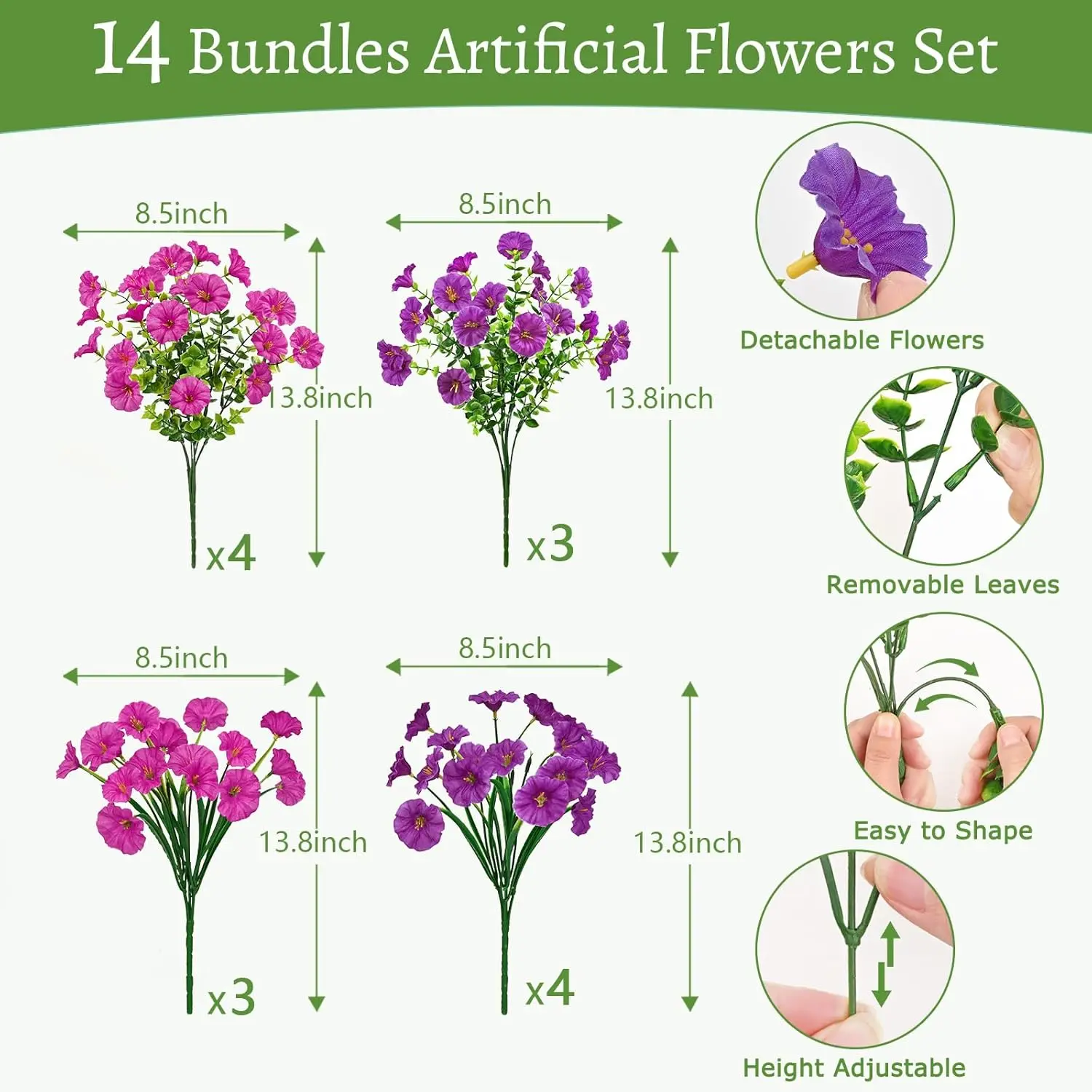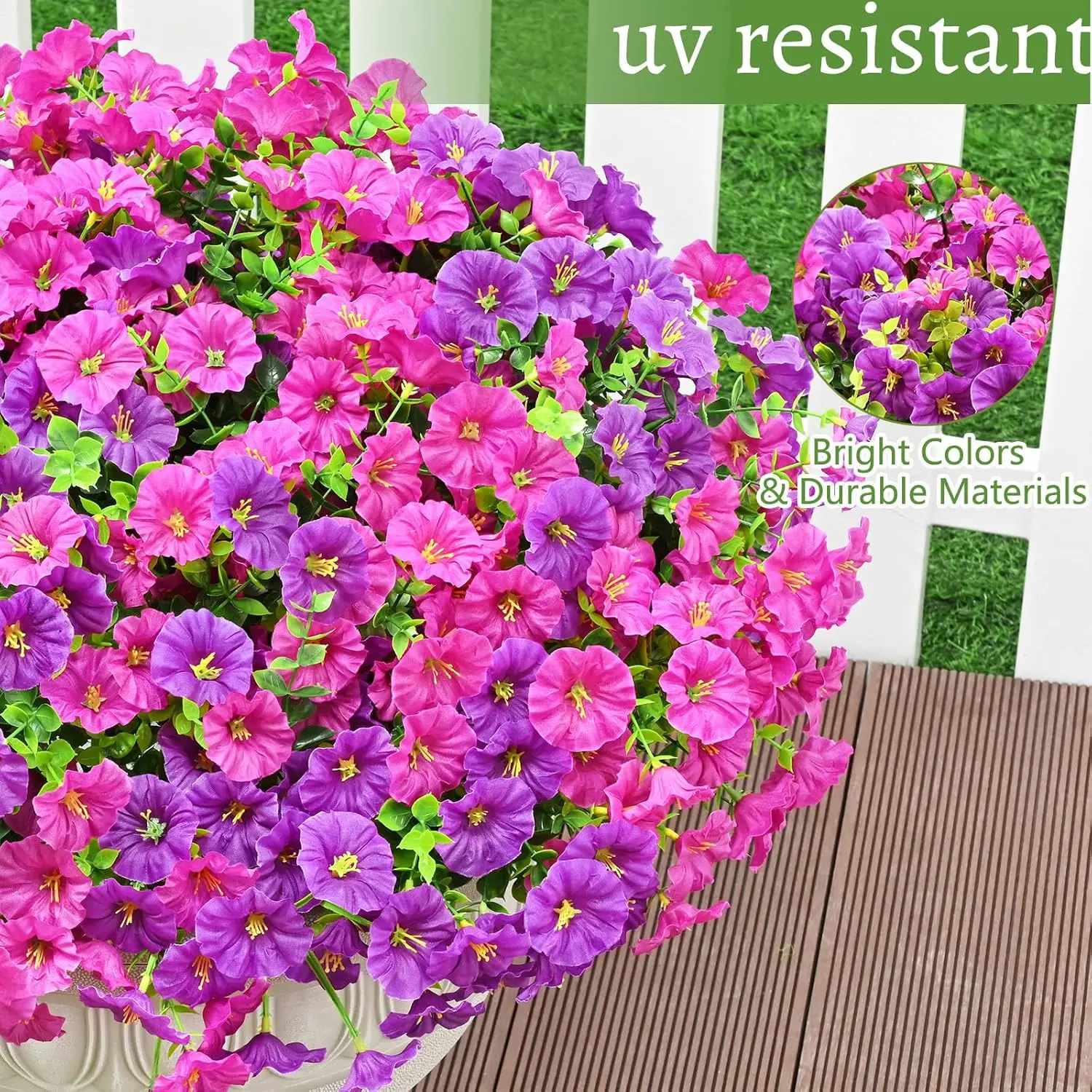 Our Artificial outdoor flowers feature bright, vivid colors and superior UV protection, ensuring they stay beautiful even under intense sunlight. Add a splash of color to your garden that lasts!