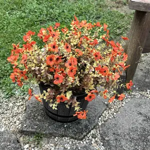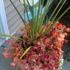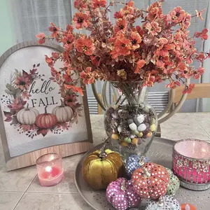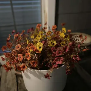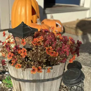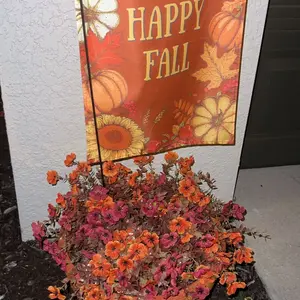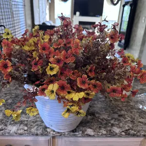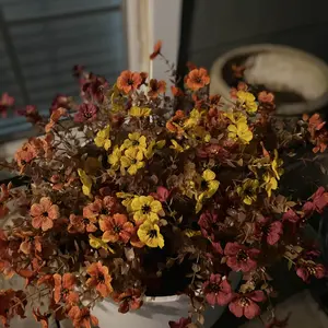 Love the aesthetically pleasing fall colored flowers. I put them into my favorite blue vase and the orange and blue were amazing together. I going to put them in my front yard after Halloween. So I have give pop of color to my yard. They will last for years.