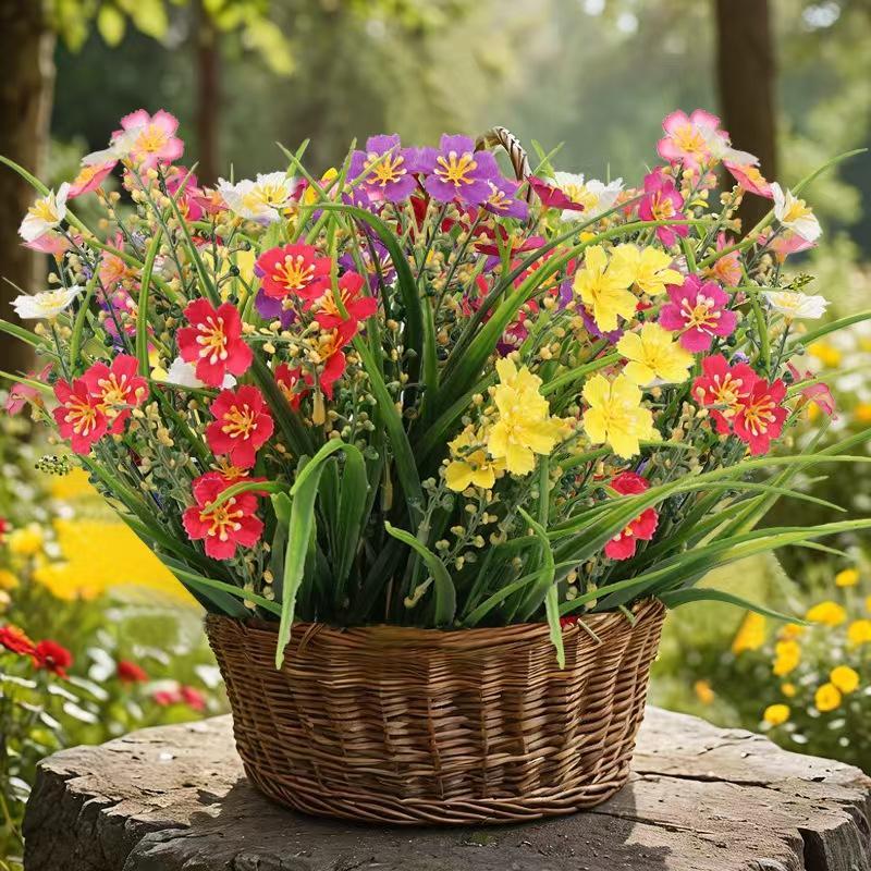 Artificial Flower Bouquet, 12/24pcs Outdoor UV Resistant Plastic Fake Decorative Flowers for Home Indoor Outside Garden Ornaments, Home Decoration Bouquet, Artificial Flower Plant, Plastic Faux Flowers
