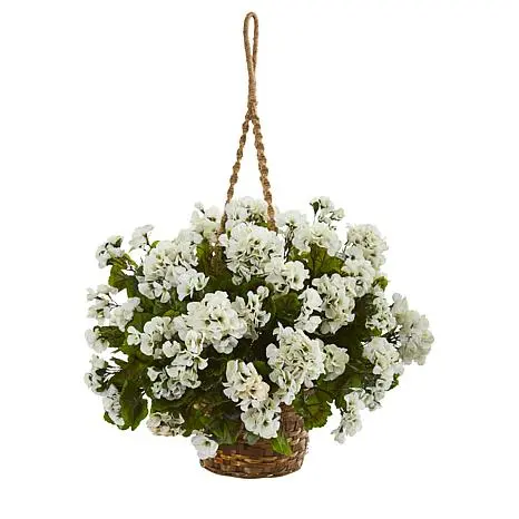 5. Nearly Natural Artificial Geranium Hanging Basket Indoor/Outdoor