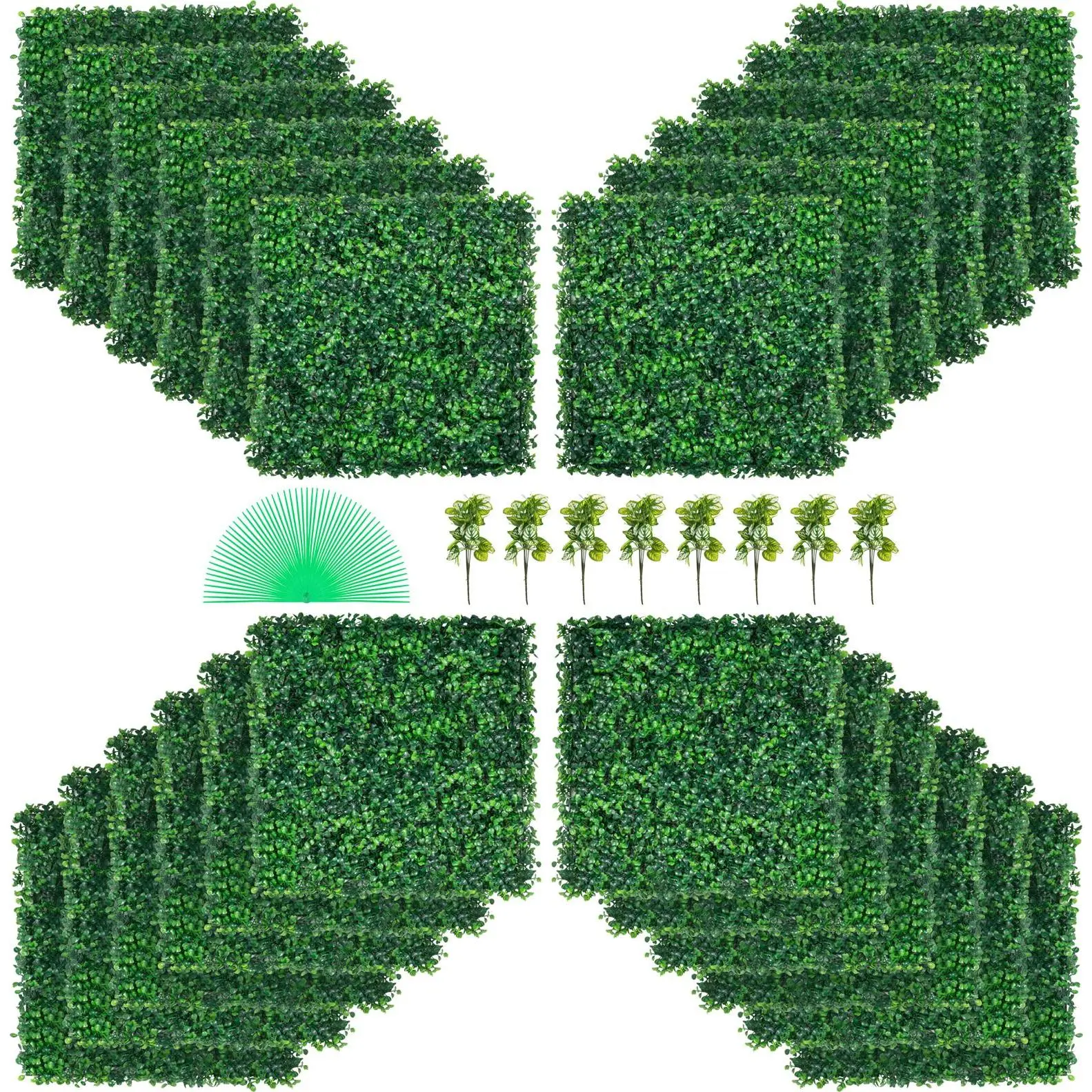 • Durable 100% PE: Size: 20'' x 20"; Quantity: 24 pcs; Covering: 66 sq.ft; Thickness: 1.6''. The green wall is made of polyethylene, sun-proof, non-fading, unbreakable, and withstands all weather conditions for years to come. Get ready to make any space stand out and show off your love for nature! Also, our plant walls are odorless, suitable for your home, and friendly to the old and children. It is SGS certificated.