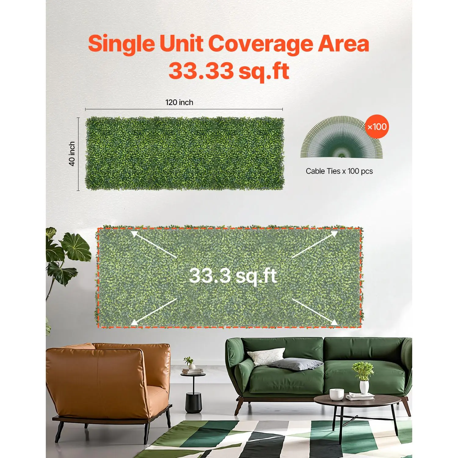 • 33 sq. ft. Coverage Area: Each faux grass wall set of artificial Milan grass covers up to 33 sq. ft. Measure your space beforehand to determine the quantity needed for the perfect fit