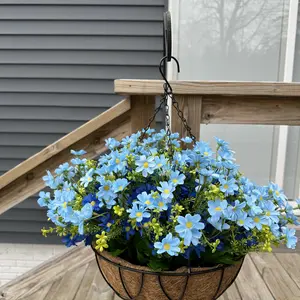 ·Suitable Size: these fake hanging flowers basket measures about 12 x 12 x 6 inches, assembled measures approximately 18 x 18 x 21 inches, you can hang it anywhere you want, proper size enough to be an eye catching outside decor for porch or charming indoor hanging plants