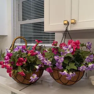 ·Easy to Assemble: simply make the artificial grass hemisphere and foam together, put them into the iron wrought flower basket lined with a coconut, insert the pansy flower and you can quickly create a beautiful faux hanging plants, also the 3 chains are connected to ensure stability, discovering a delightful addition to your home decor