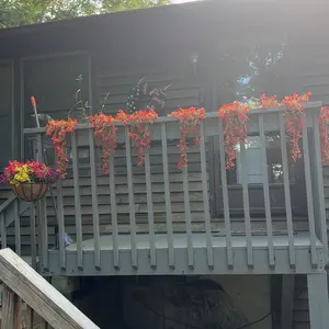 Beautiful & full. I’m excited for spring come so I can hang these realistic flowers in my yard. Very colorful & the basket with chain are perfect size. I am going to add a foam piece just to secure the flowers more in the wind.