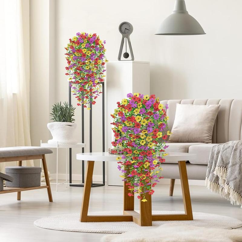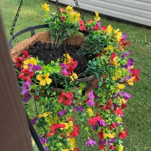 【Universal Setting】: Ideal for various settings, these artificial hanging flowers suit gardens, porches, or windows effortlessly.