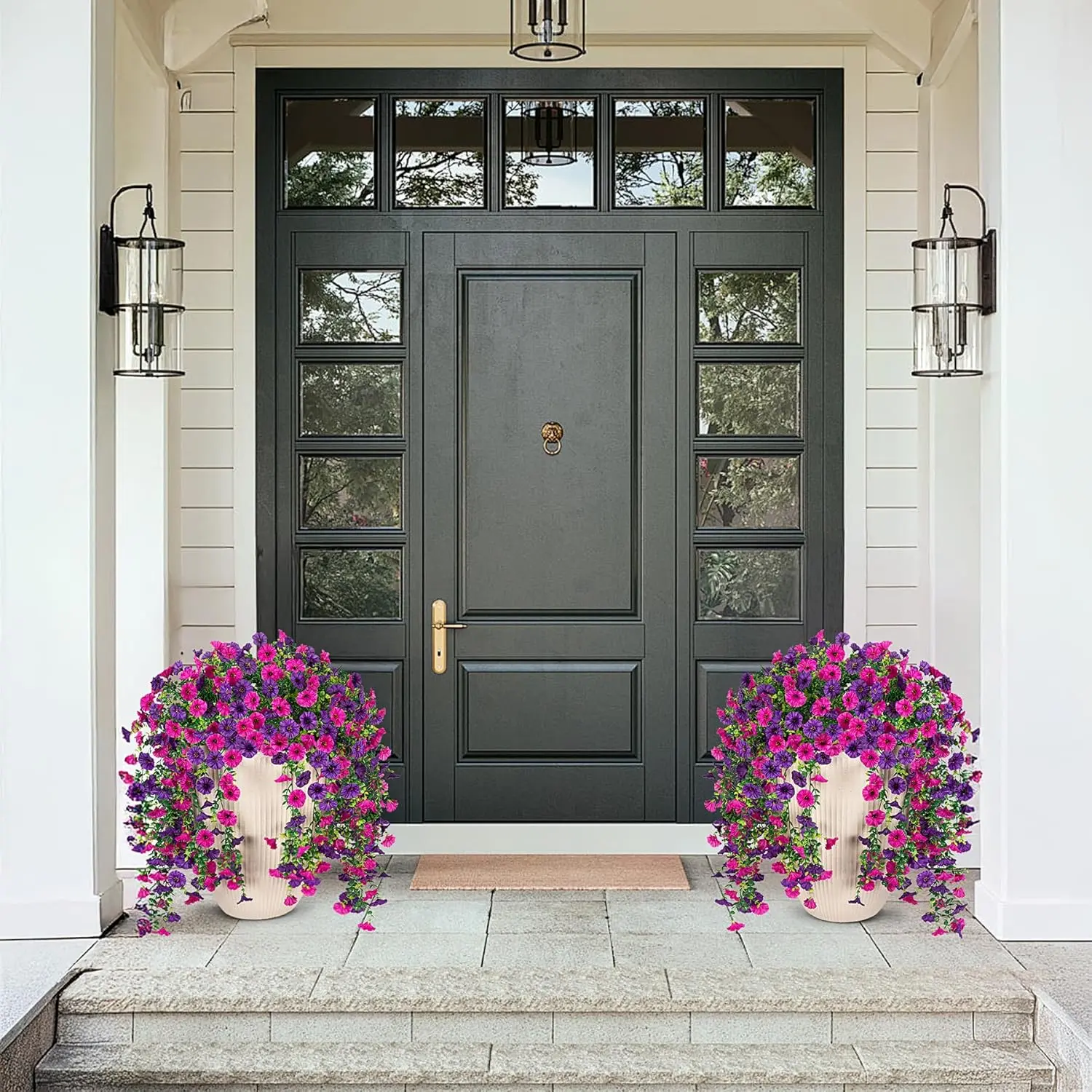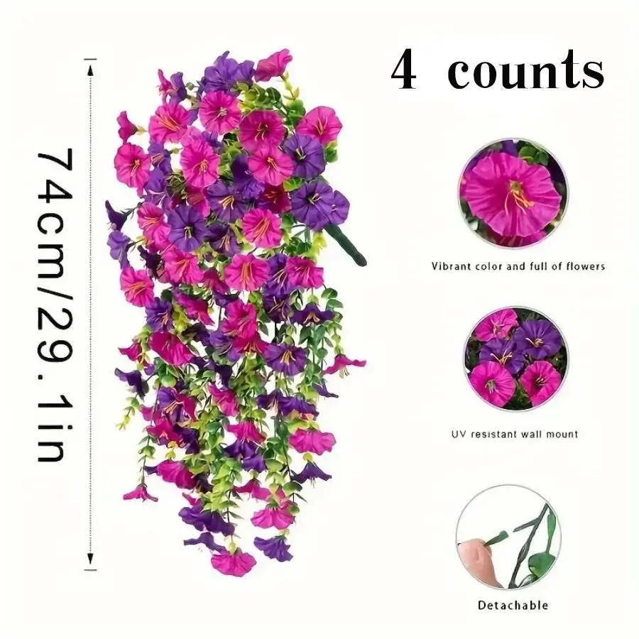 Artificial hanging flowers, but resistant faux silk morning glory petunia perfect for porch balcony patio yard #artificialflowers #homedecor #homedecorideas #floral #floraldesign #floraldecor #summerdecor