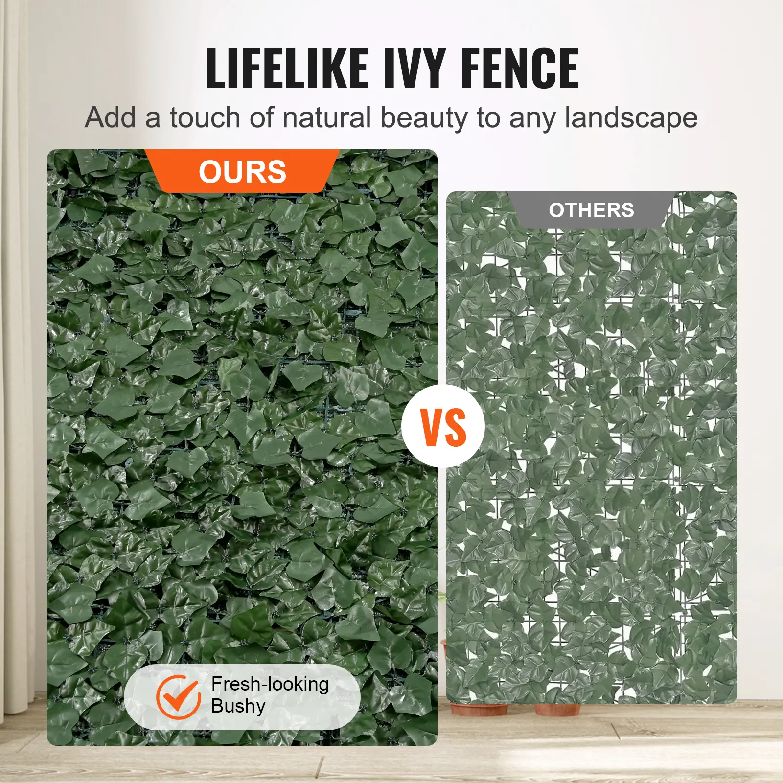• 100% Blockage: The leaves are positioned closely together, forming a natural barrier that blocks intense sunlight and unwanted views. Despite their density, the faux ivy screen still allow for airflow through the mesh back. The reinforced connections ensure the leaves remain securely attached to the panels, preventing them from being blown away by harsh conditions.