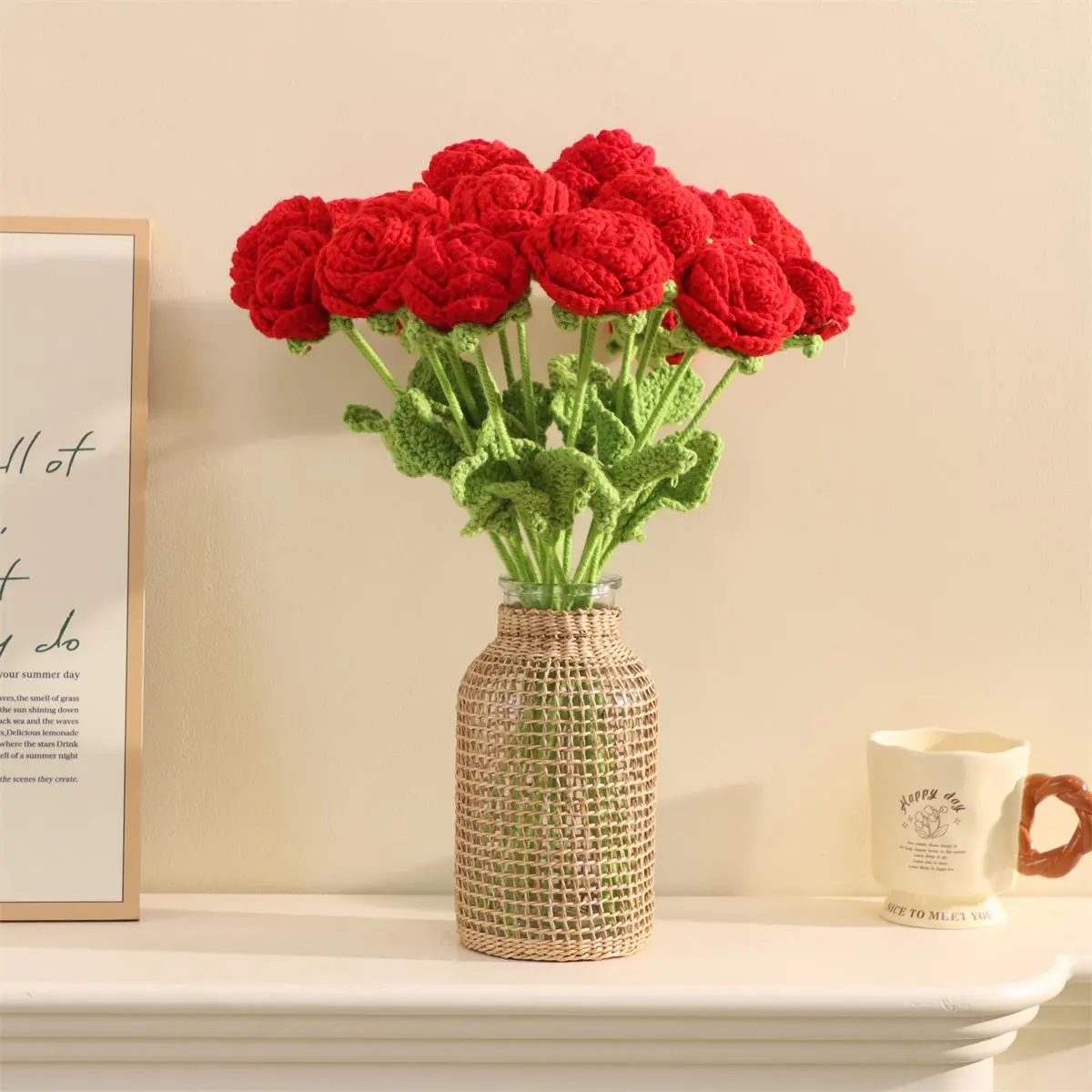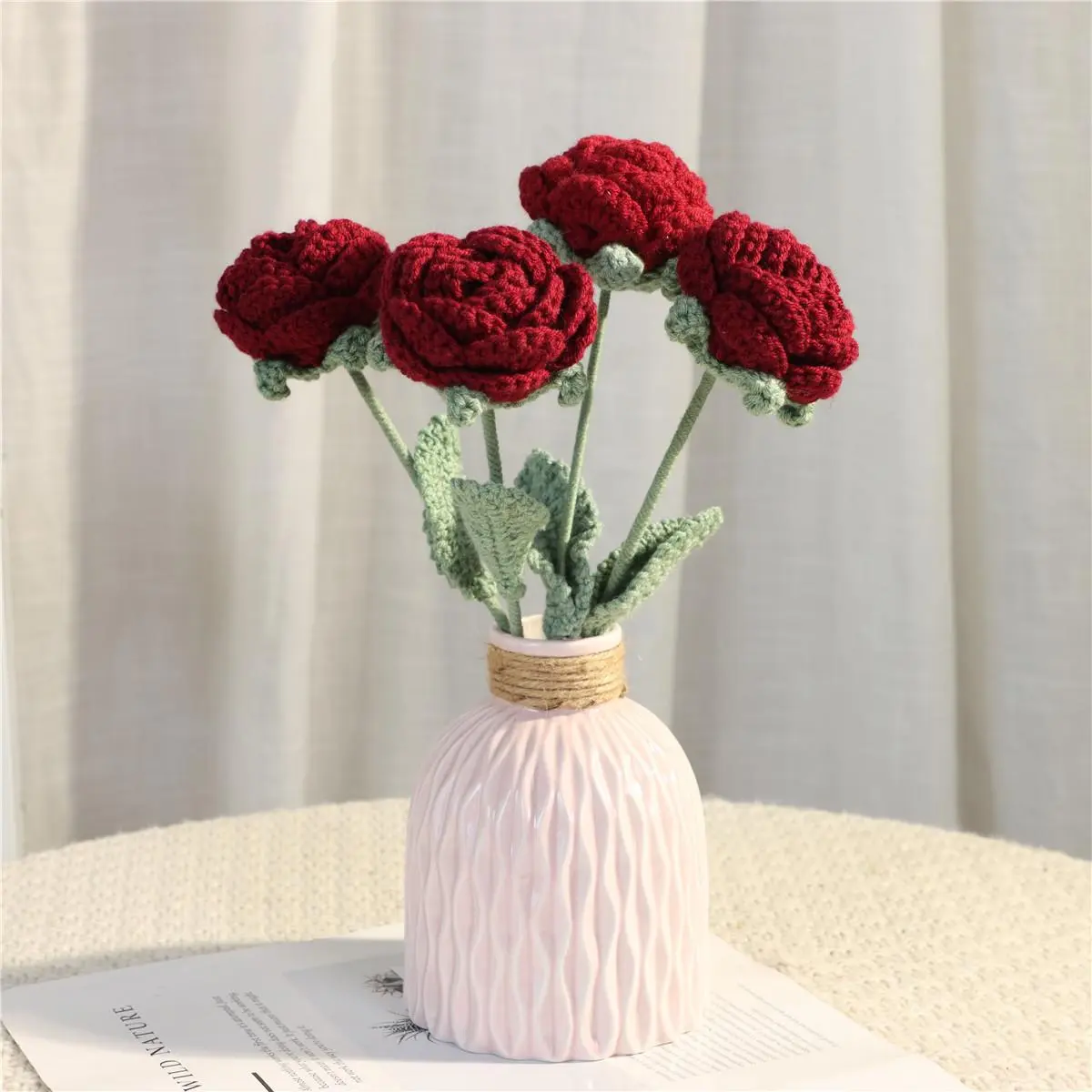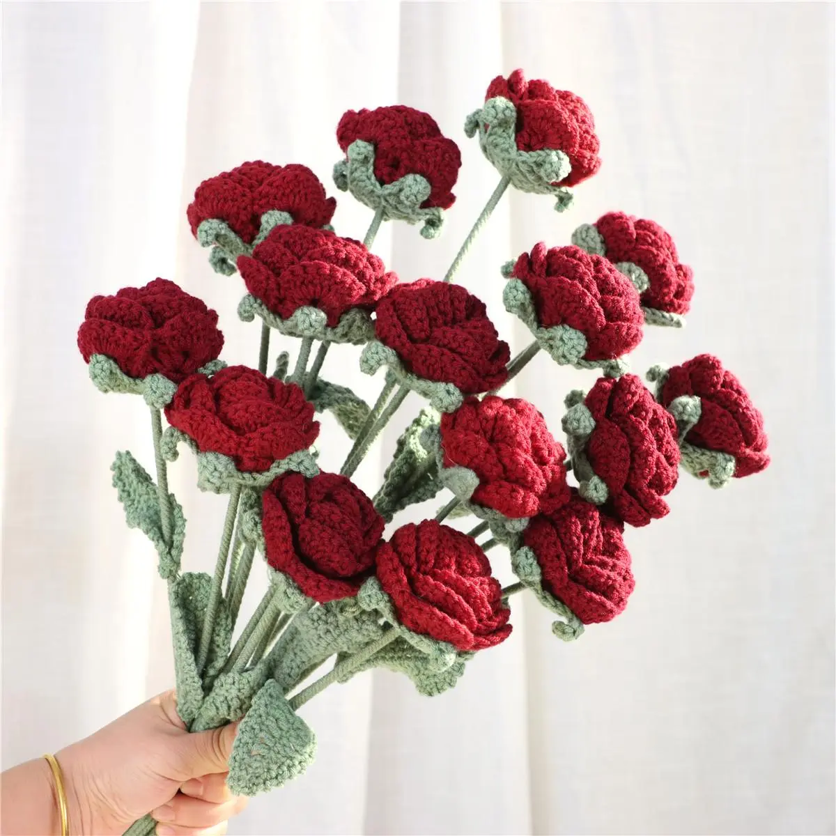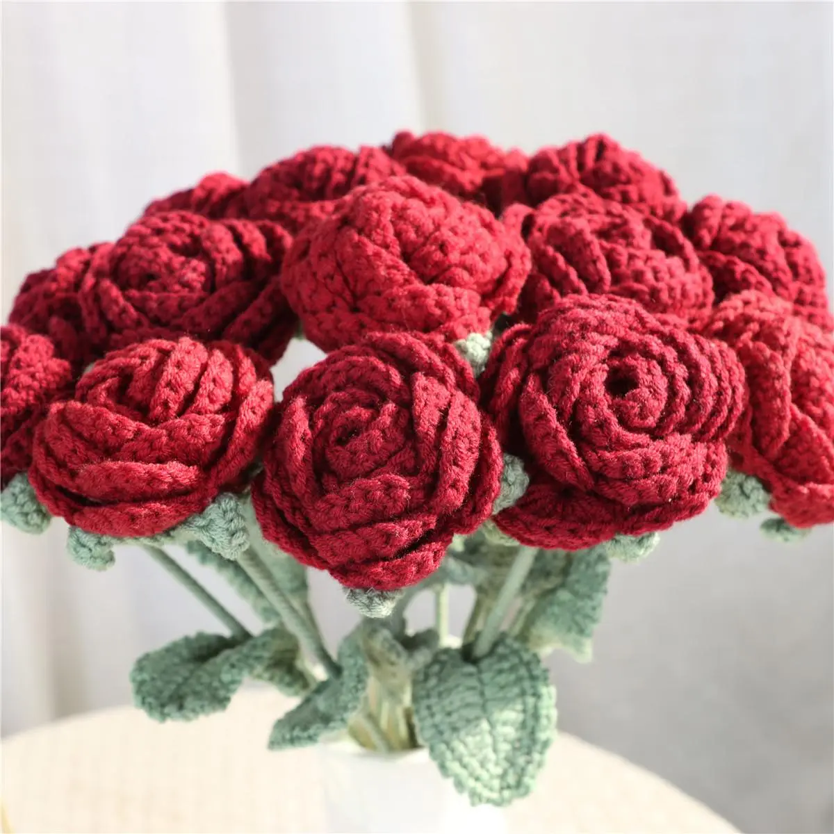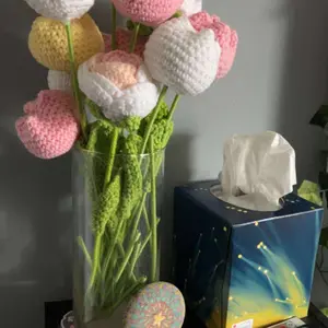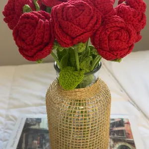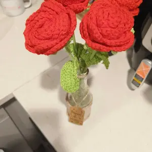 These crochet Flowers are very beautiful. The colors are super vibrant, and the quality is also great. The flowers is on an aluminum wire, making it flexible.
