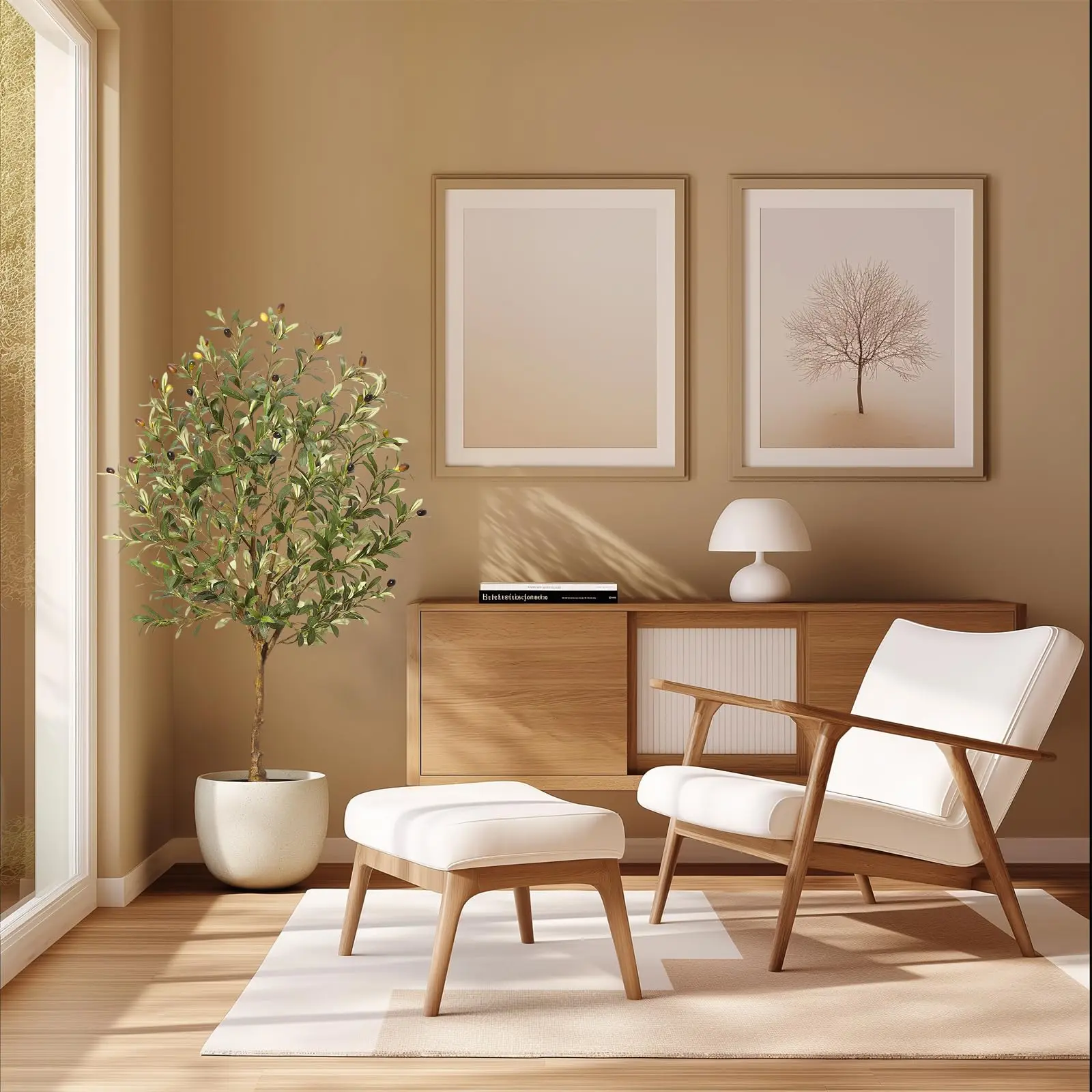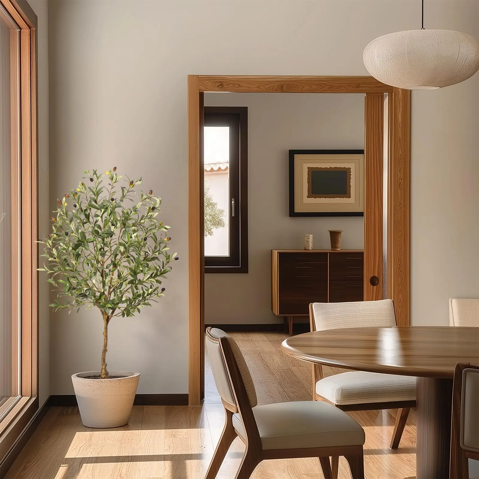· 【Highly Realistic Design】GARVEE faux olive tree features realistic branches and leaves, using fine craftsmanship to create an artificial olive tree that mimics the foliage of a natural olive tree, with each leaf and fruit carefully sculpted. Makes this faux tree look like a artwork. The tree comes with a non-decorative pot, recommend you place this tree into a decorative pot, which will enhance the overall decorative effect.