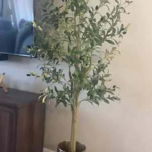 Decorative pot not included. Enjoy the natural look of this artificial olive tree!