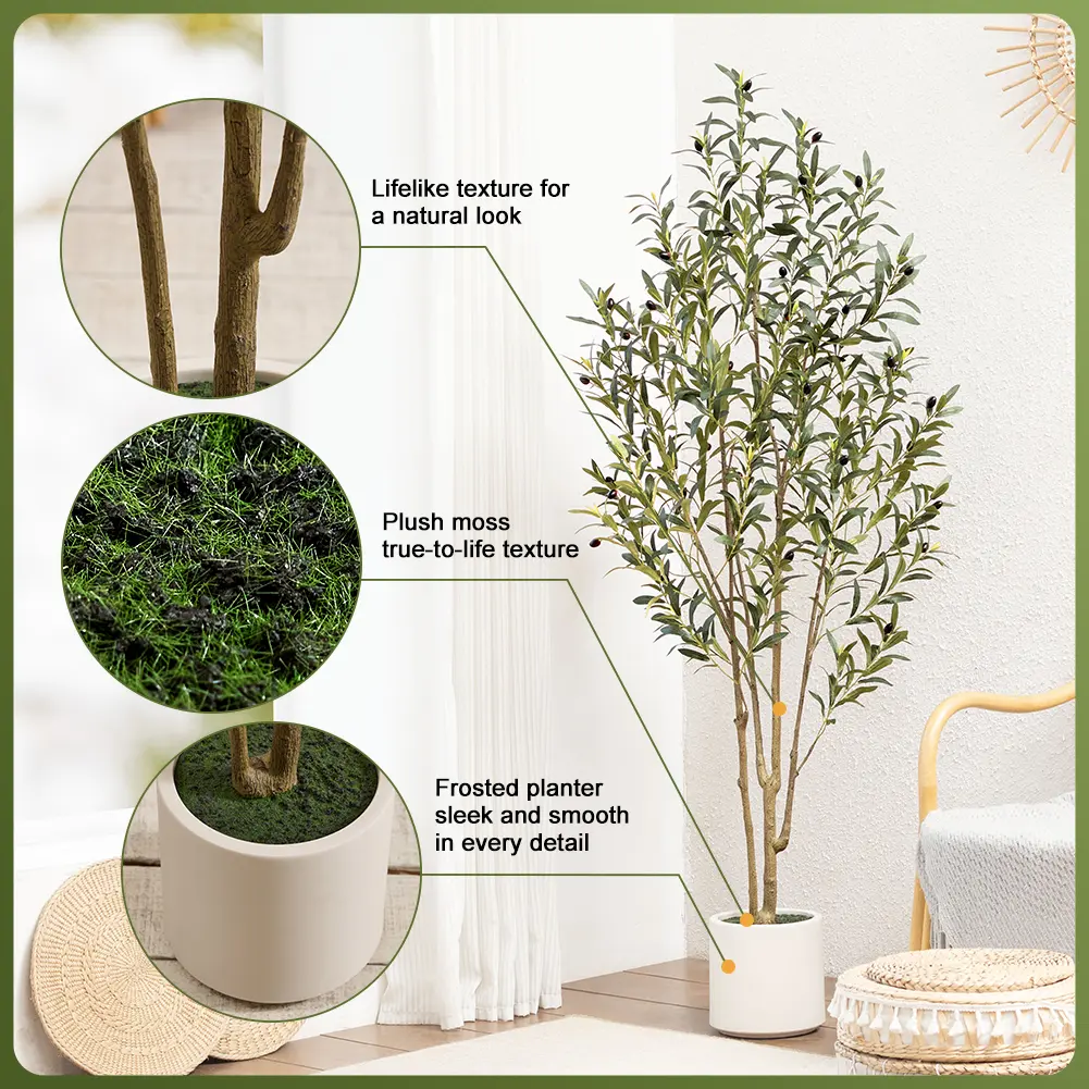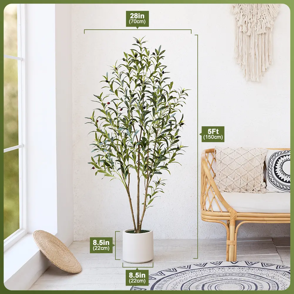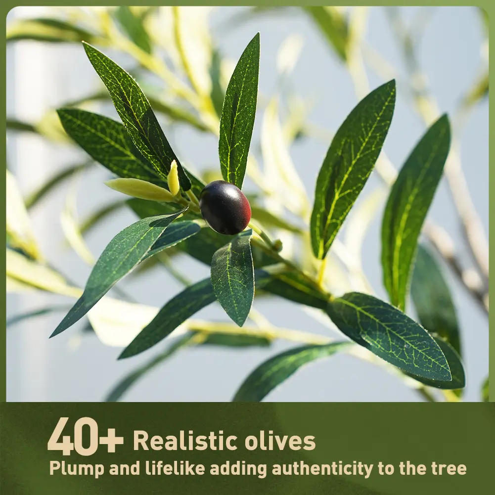 Enhance your space with our dense artificial olive tree. Featuring thick branches and tightly packed leaves, it offers a fuller, more realistic look without the maintenance.