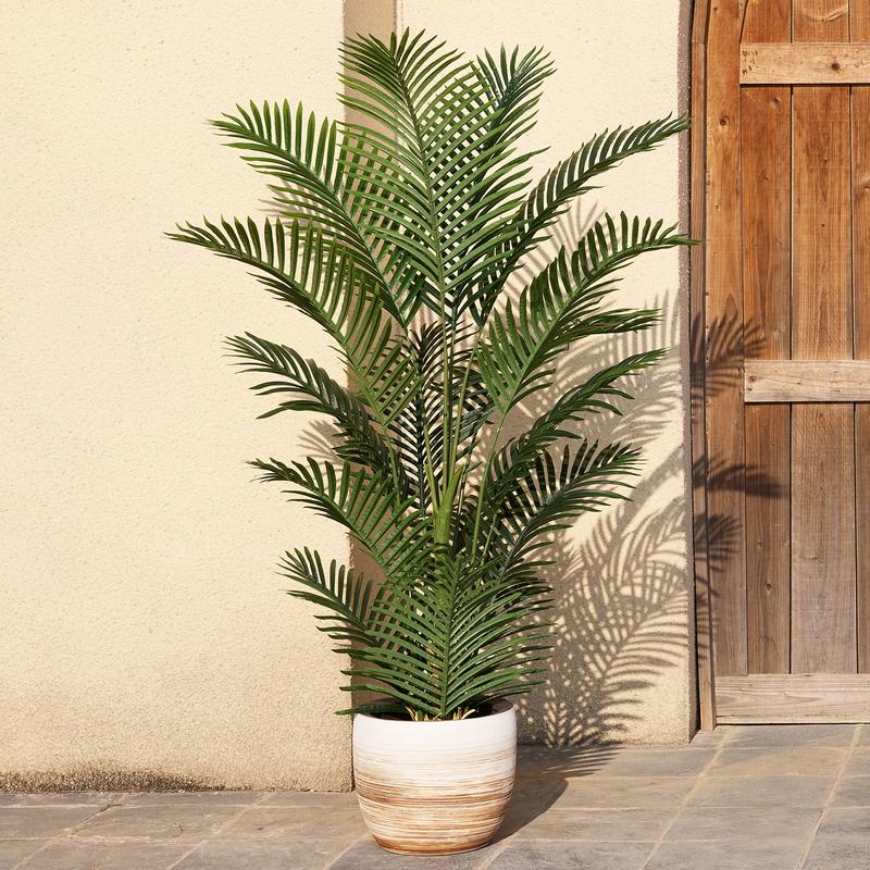 Forget about watering, pruning, or sunlight. This artificial palm tree remains vibrant and beautiful with zero upkeep, ideal for busy homeowners or those without a green thumb.