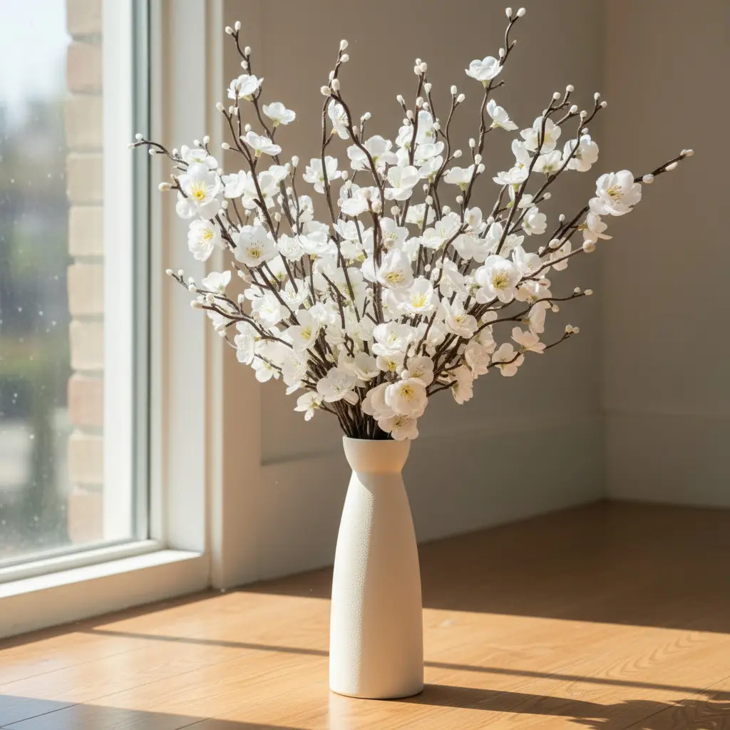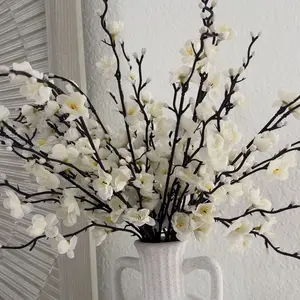 Add a fresh pop color with this winter and spring artificial flowers, bright for a shiny decoration, bright yellow, red, pink and white flowers open on the fragile leafless.