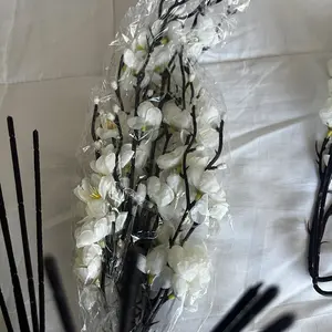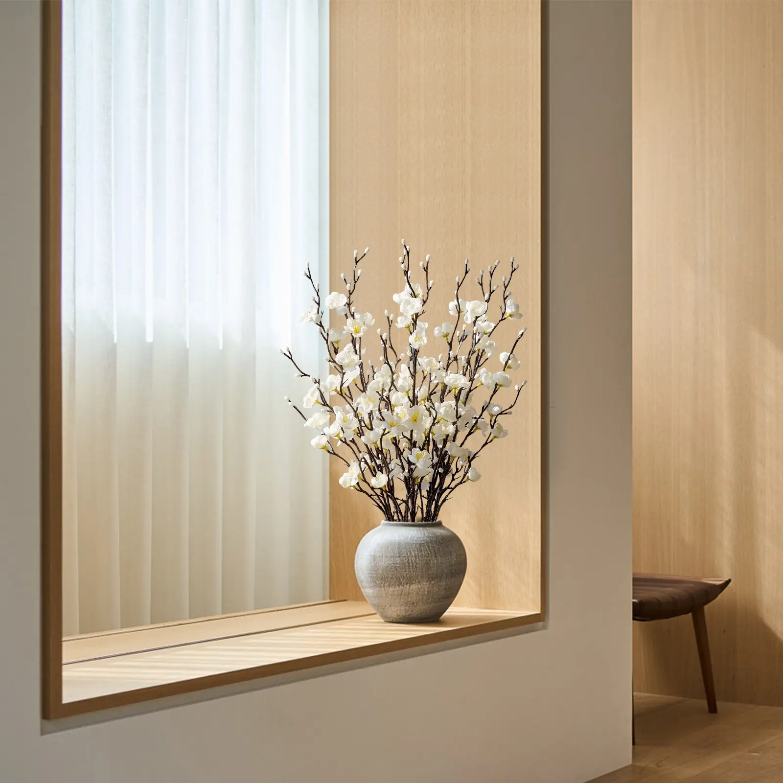 Package includes: 12 pcs/24pcs artificial wintersweet (vase not included). Flower total high about 21.5 inch, material: silk, plastic, wire