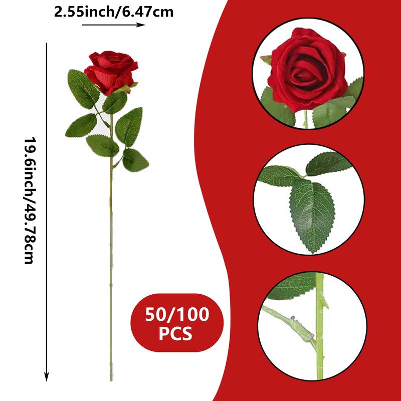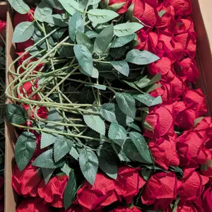 ·50/100 packs of red artificial roses, each with 6 leaves.