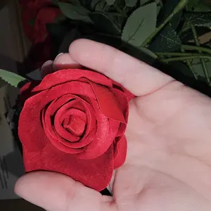 Pleasantly surprised. The velvet actually looks very pretty in person. In the first photo is the velvet rose next to a regular silk rose and you can see the difference. I think they’re well worth the cost.