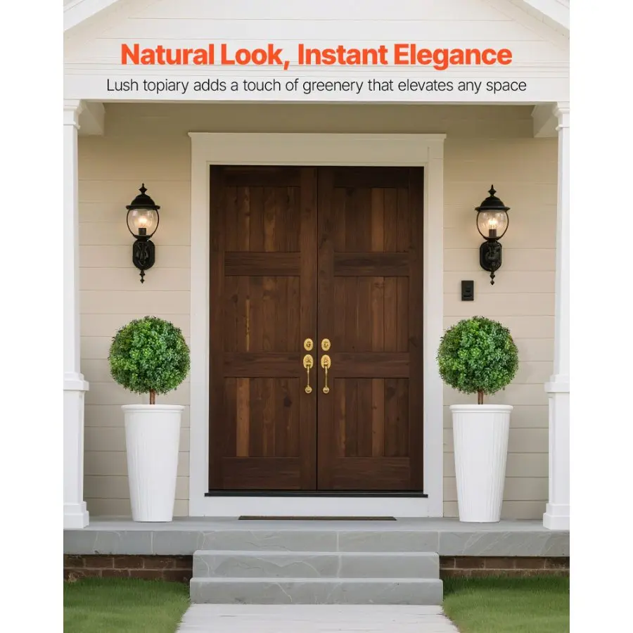 VEVOR Artificial Topiary Cypress Trees with Ground Spike, 16 inch 2 Set Faux Shrubs Bushes Potted Plants, Fake Silk Tree Look Real for Decor Front Porch Outdoor Indoor Patio Garden Balcony BackyardVEVOR Artificial Topiary Boxwood Trees with Ground Spike, 27 inch 2 Set Faux Shrubs & Bushes Potted Plants, Fake Silk Tree Look Real for Decor Front Porch Outdoor Indoor Patio Garden Balcony Backyard Lifelike, Weather-Resistant Foliage Strong, Realistic Trunk Ground Spike Realistic