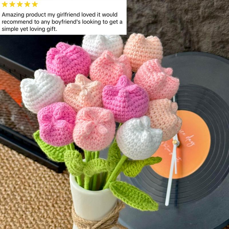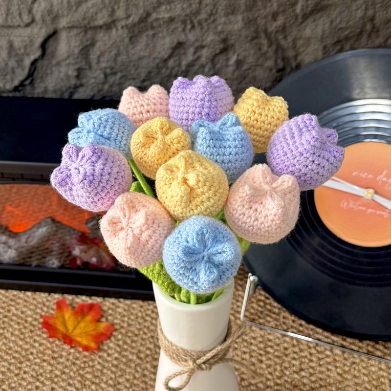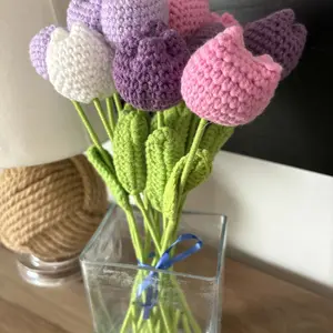 【Crocheted with Care】: The realistic appearance mimics the natural beauty of tulips, while being durable and requiring no special maintenance, allowing you to easily enjoy their charm.
