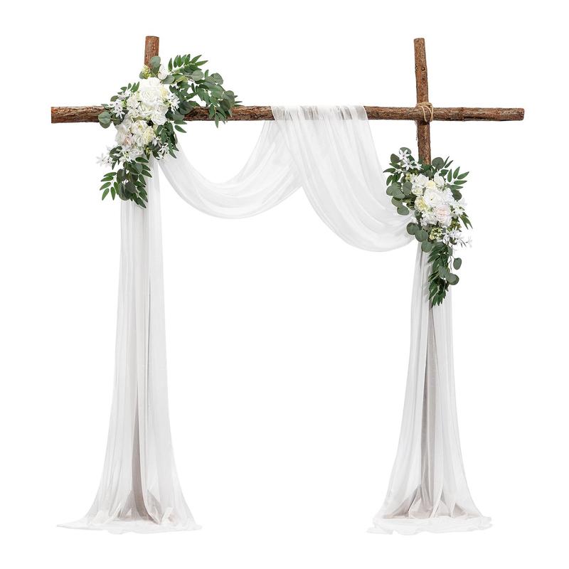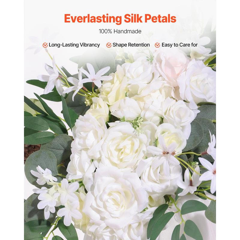 VEVOR Artificial Wedding Arch Flowers Kit White With 2 Pcs Flowers 1 Pcs Drapes