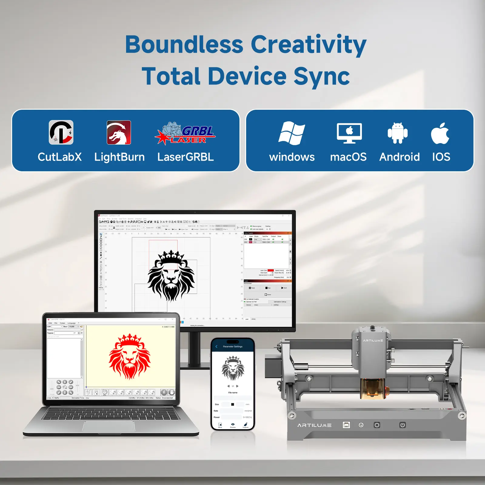 Supports CutLabX and professional GRBL software (LightBurn & LaserGRBL) for JPG, PNG, NC, DXF files.