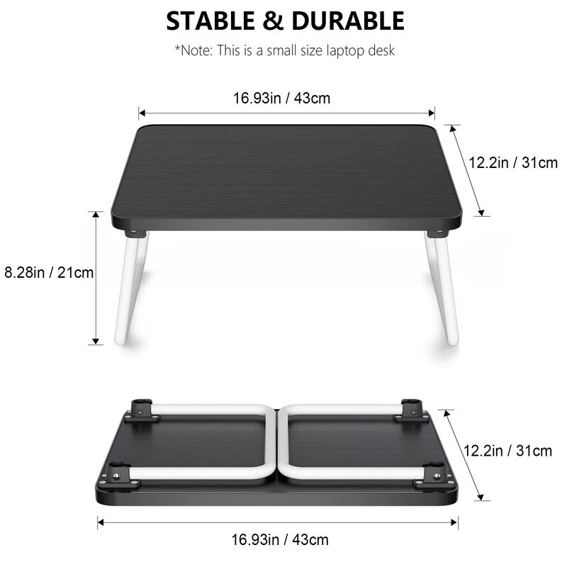 ·NO ASSEMBLY REQUIRED: The laptop table does not need to be installed and can be used directly when opened.Product size: 17"(L) x 12.2"(W) x 8.3"(H).