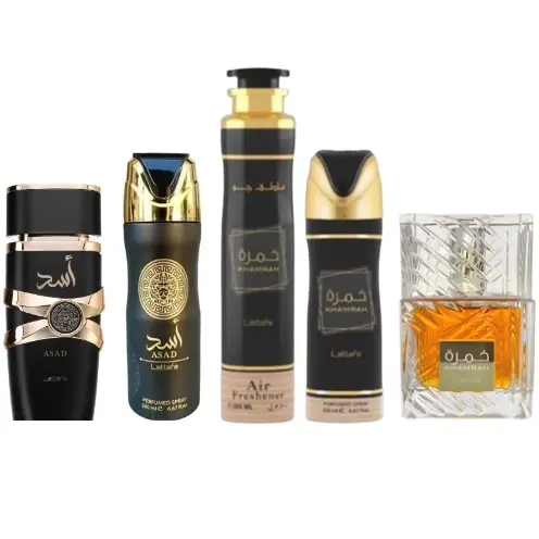 The Asad + Khamrah 5PC Gift Set is perfect for those who appreciate deep, layered fragrances that make a statement. This set offers a complete sensory experience, from personal scent to environmental aroma, ideal for gifting or personal indulgence.