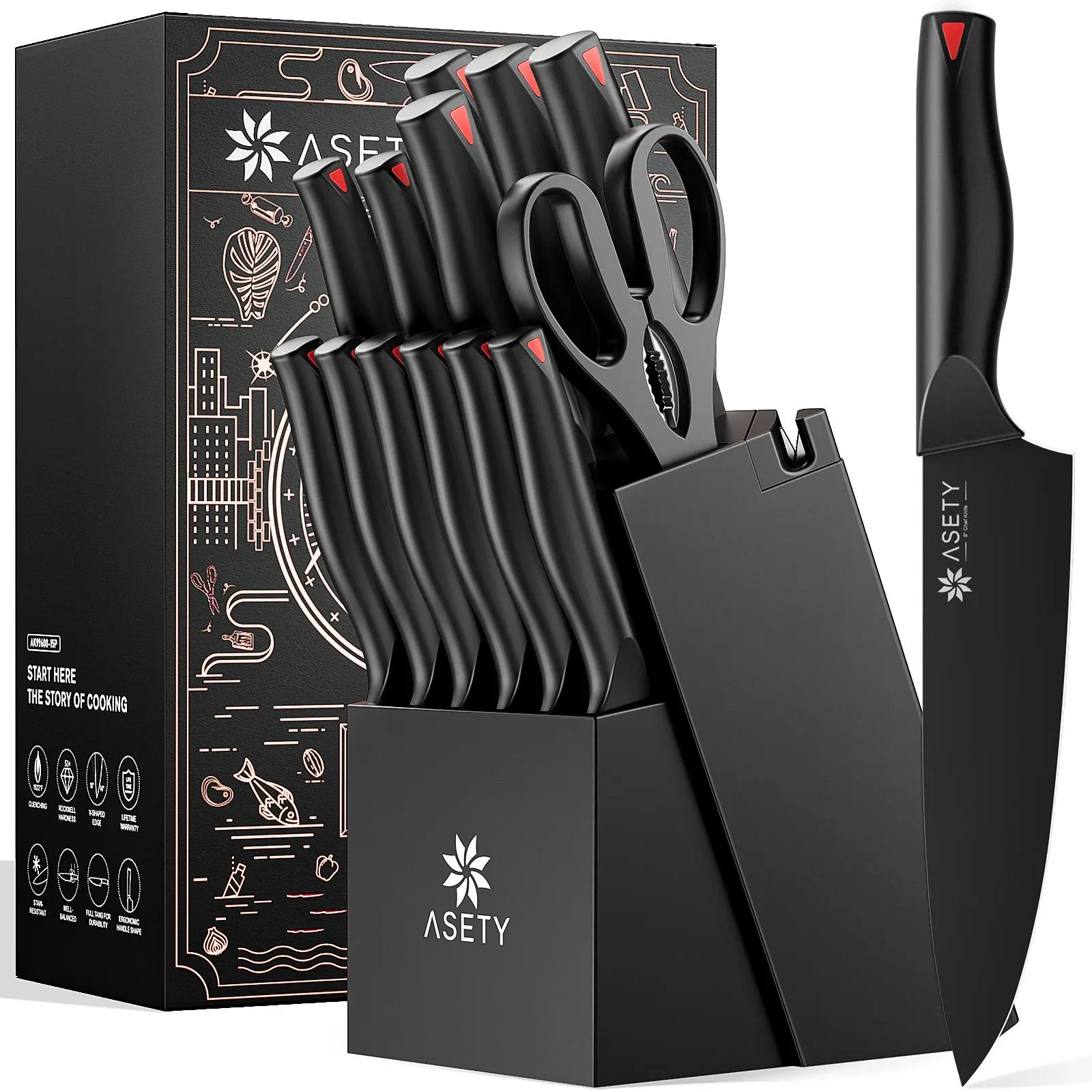¡SHARP KNIFE SET: Delivering razor-sharpness out of the box! Each knife boasts a hand-polished edge at a precise 15-degree angle per side. The blades are precision-forged from a single piece of high-quality stainless steel. Rust-resistant and long-lasting sharpness make this set perfect for slicing, cutting, and dicing.