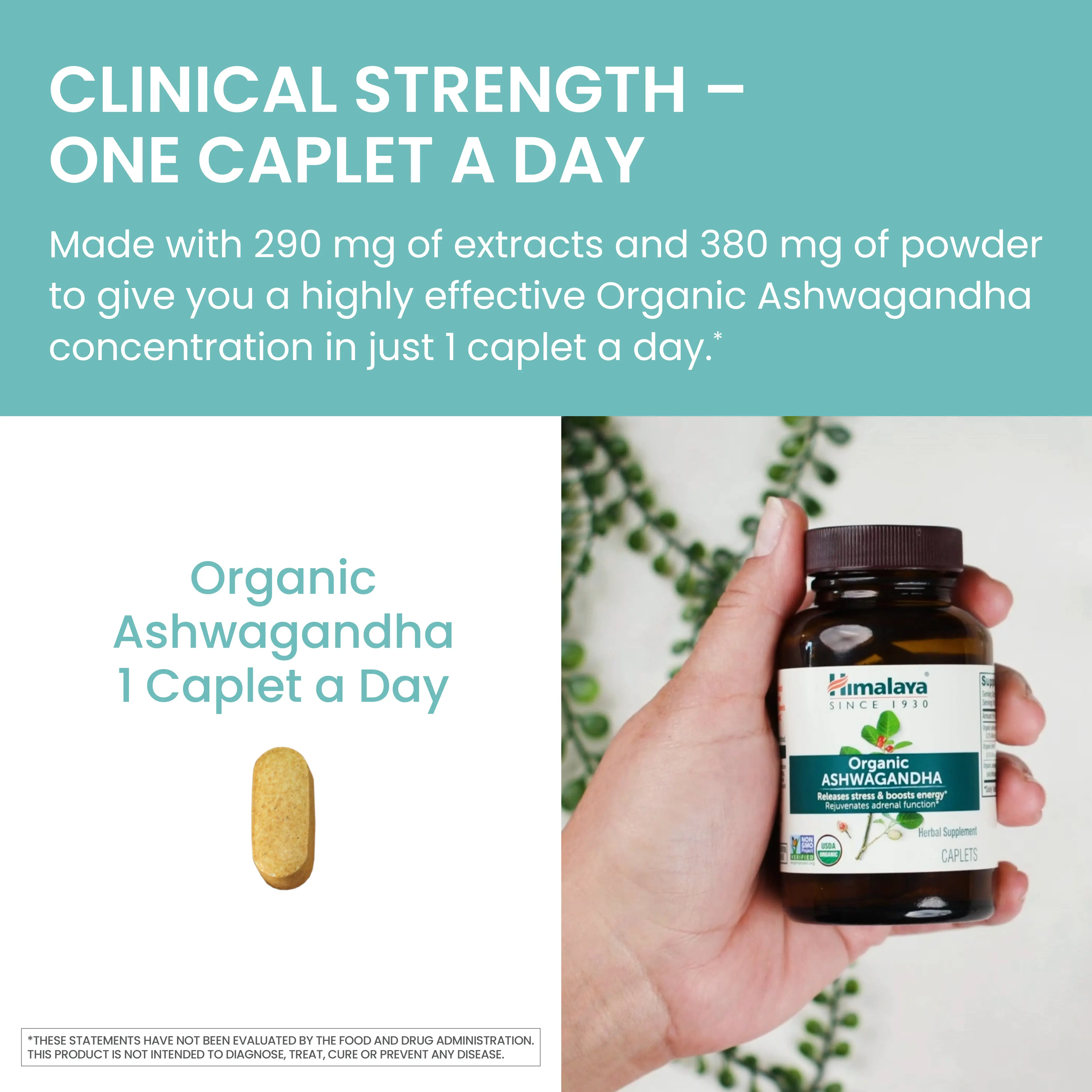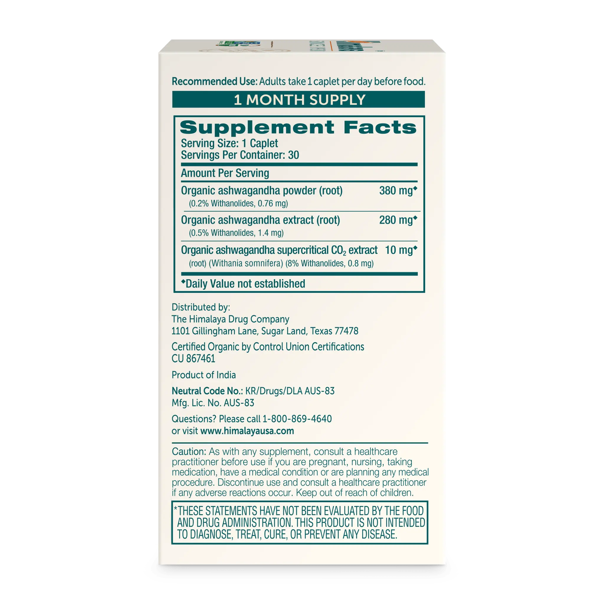 Himalaya Organic Ashwagandha Root - Adrenal Support, Stress Relief, Vegan, Non-GMO - 670 mg, 30 Caplets