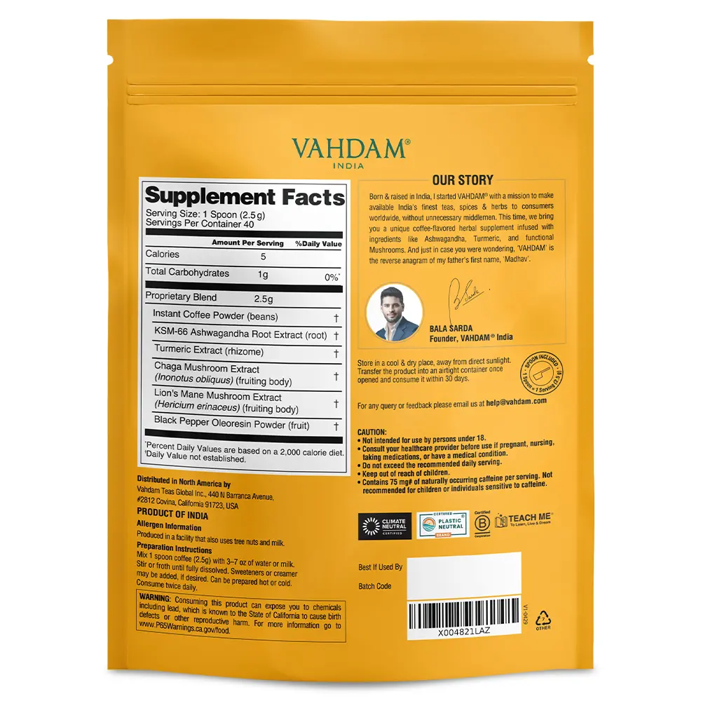 I ask you, why is there a WARNING label on this so called superfood coffee containing ashwagandha tumeric, chaga mushroom, lion's mane mushroom, & black pepper??