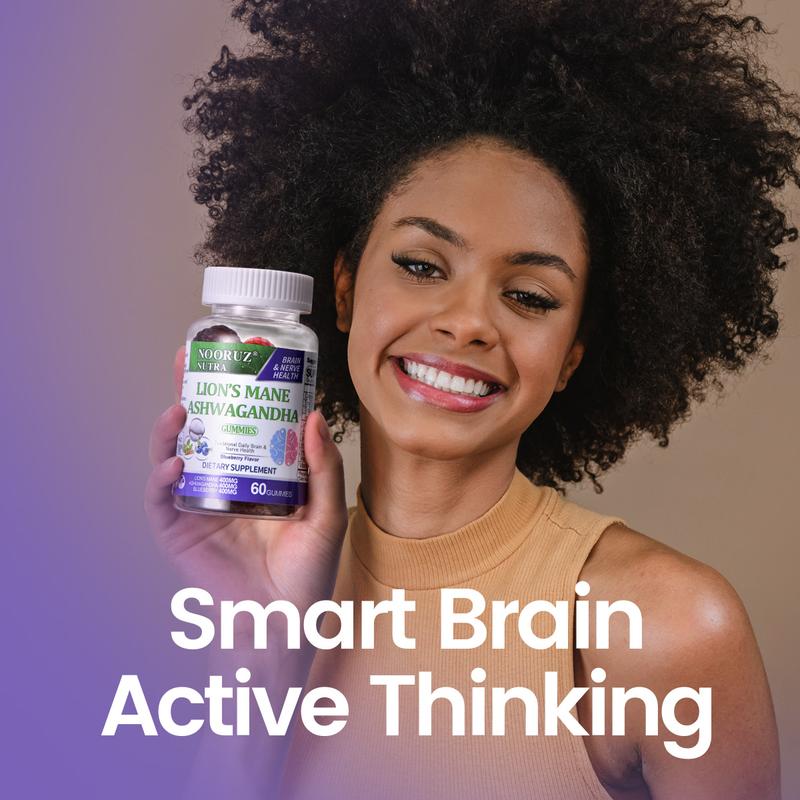 Unlock mental clarity and focus with Ashwagandha-infused gummies🧠💆‍♀️#wellness #supplements #ashwagandha #blueberry #lionsmane #alzheimers #dementia #brainfog #memory #NOORUZ #gummies #fyp #tiktokmademebuyit #brandfestival