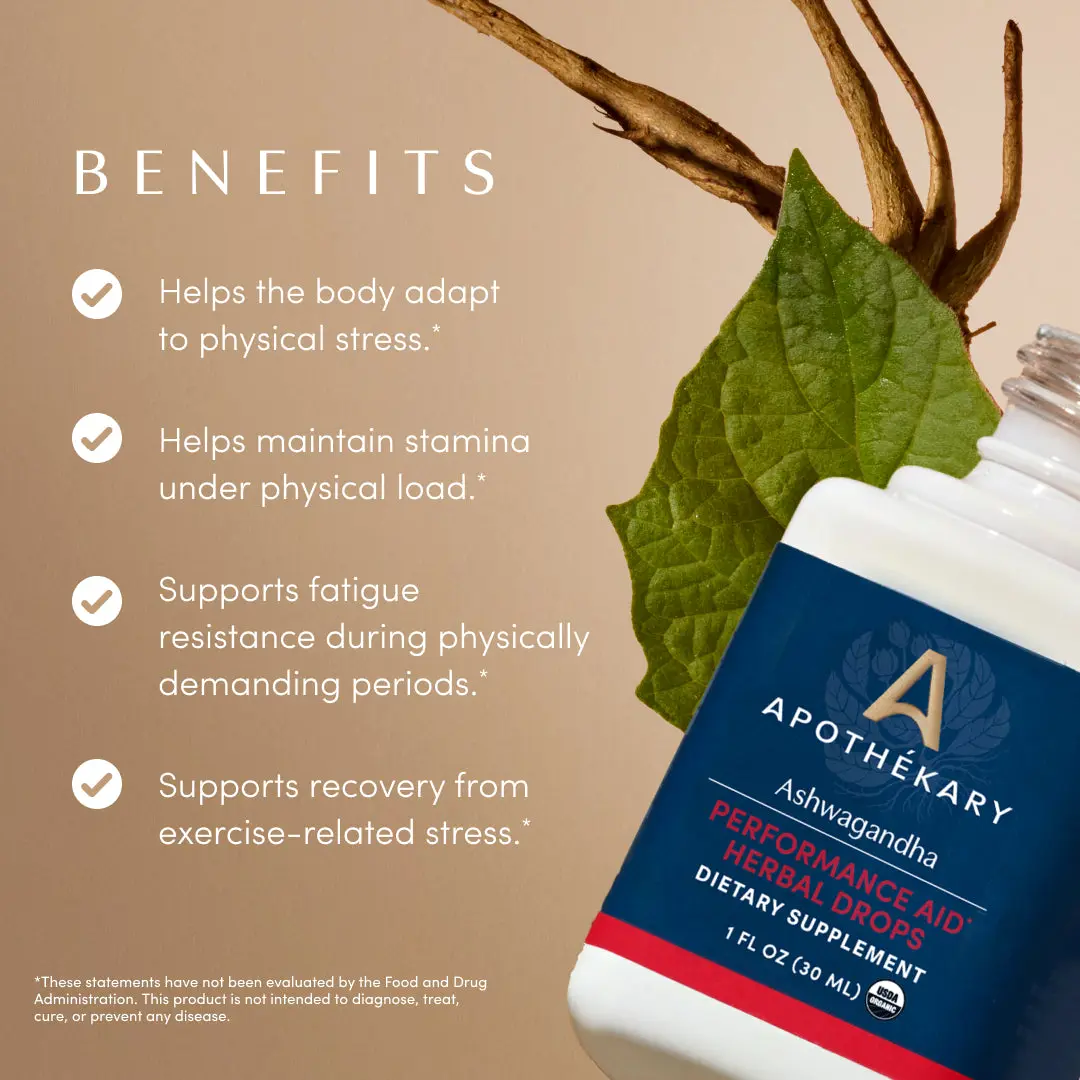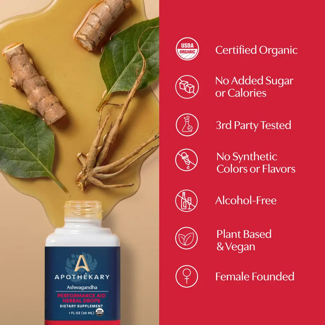 5. Apothékary Ashwagandha Herbal Drops - Dual-Extraction Whole-Plant Root for Resilience & Stamina - Antioxidant Rich, Alcohol-Free, Certified Gluten-Free, PETA Certified Vegan & Cruelty-Free, Third Party Tested, Plant-Based, Made in the USA