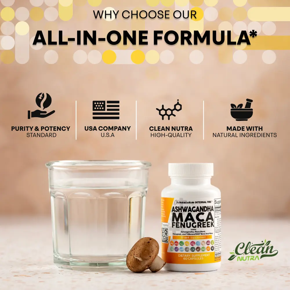 ·Our product contains a full Ashwagandha, a red yellow black Maca blend, and a full dose of Fenugreek seed extract. So quit wasting time ordering all these products separately, Clean Nutraceuticals has already made it easy in one convenient and effective product.