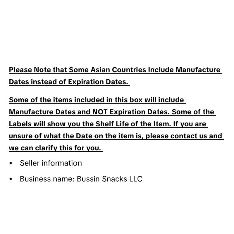 They sent us a few expired products. I ordered 5 mystery boxes the kit kats expired 12/2025 and the oreos expired in november. Submitted a claim and they denied it because they claimed I didn't read the information correct. Manufactured 02/17/25 and 9 month shelf life is expires 11/17/25 and I received my boxes 12/02/25. Dont get scammed by these guys. Very sad they just wouldn't accept they made a mistake and try to fix it. Would Not Buy From Here. DONT GET SCAMMED.