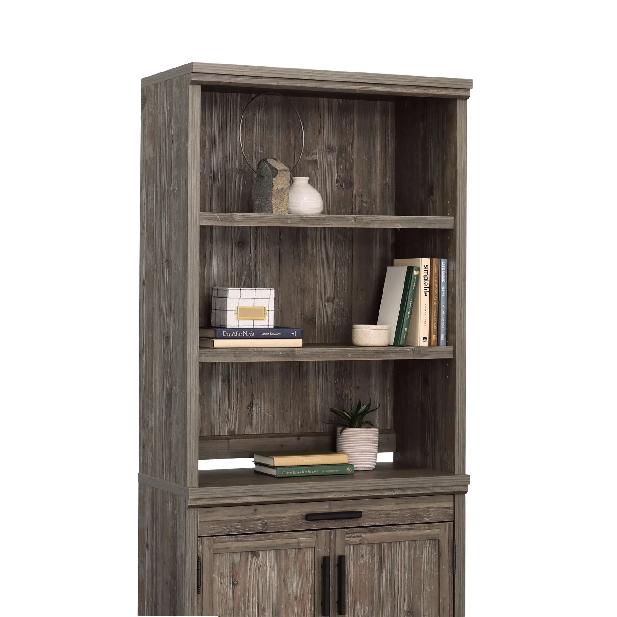 Aspen Post Library Hutch/ Bookshelf with Adjustable Shelves & Concealed Storage - Modern Farmhouse Design for Home Office or Living Room