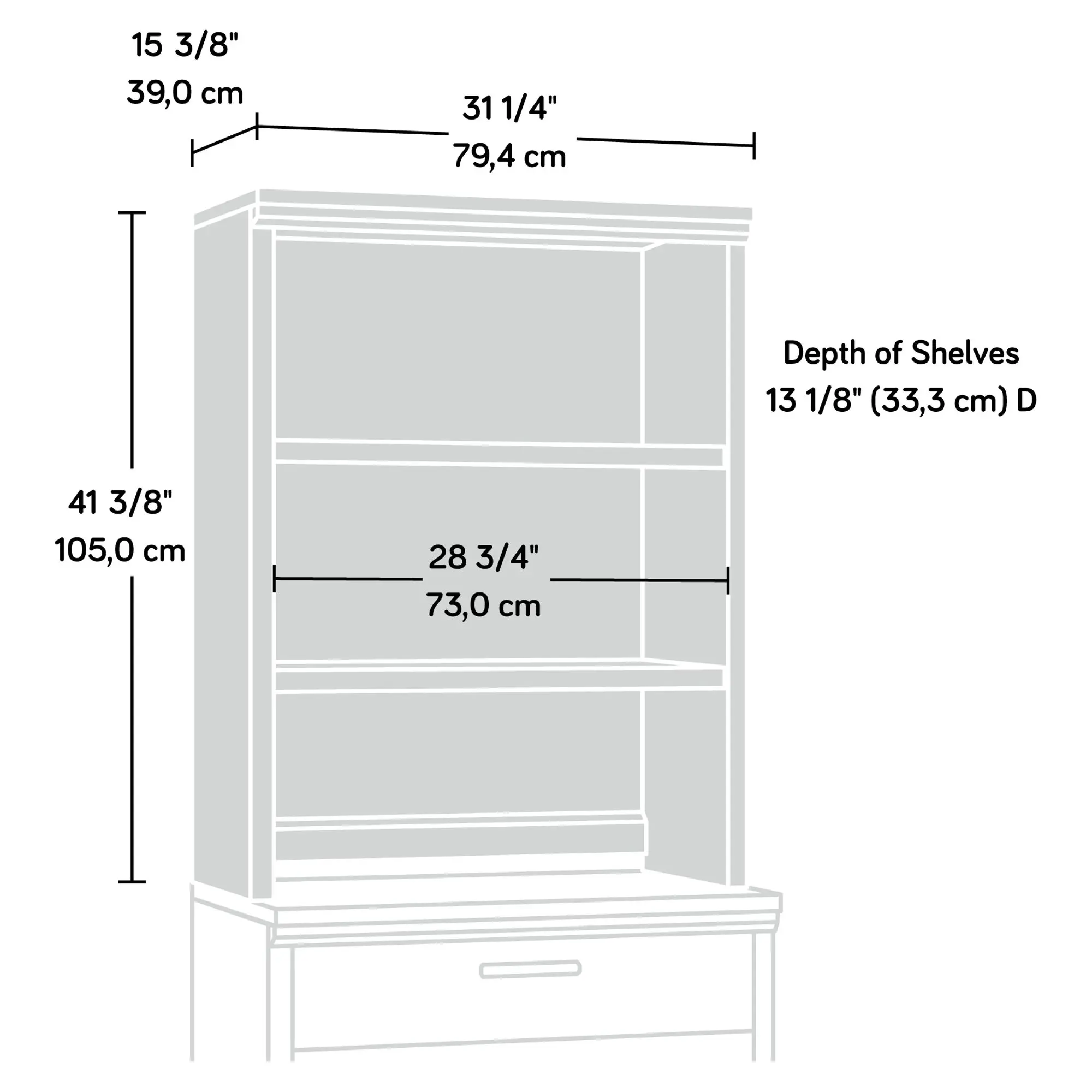 This hutch is perfect for your home office or living room. It blends functionality with aesthetics, featuring a rustic finish that mimics reclaimed wood. The dimensions are L: 31.26" x W: 15.35" x H: 41.34". It includes multiple open shelves for display and a lower section for concealed storage. Ideal for home offices, living rooms, or dining areas.