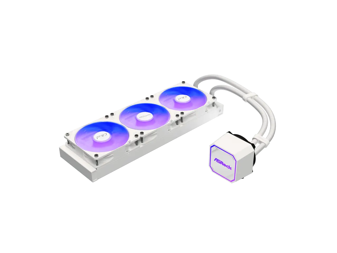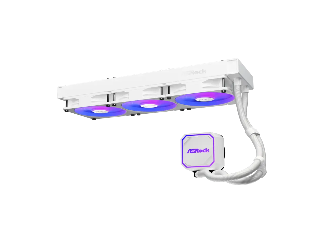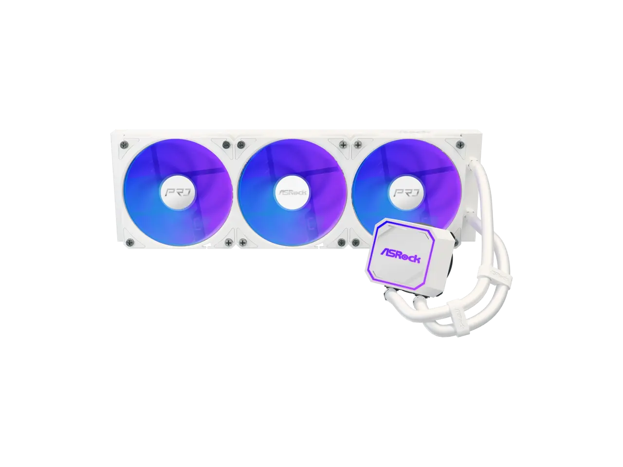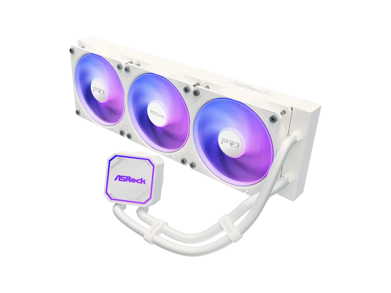 ASRock AIO PRO White 360 ARGB 27mm radiator, ARGB waterblock, ARGB Hub-lighting fan, white version