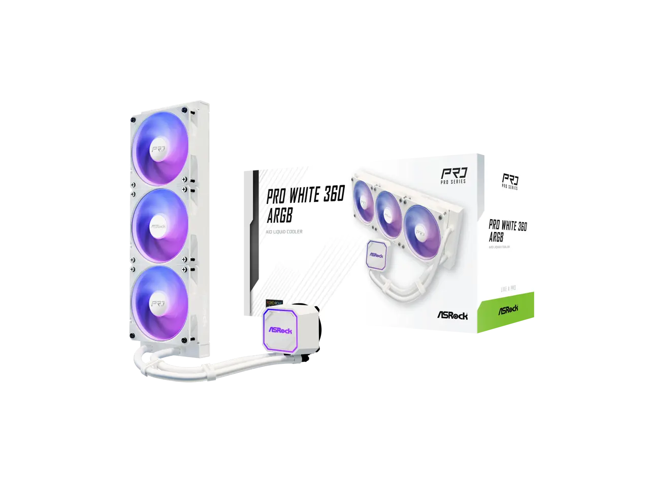 5. ASRock AIO PRO White 360 ARGB 27mm radiator, ARGB waterblock, ARGB Hub-lighting fan, white version