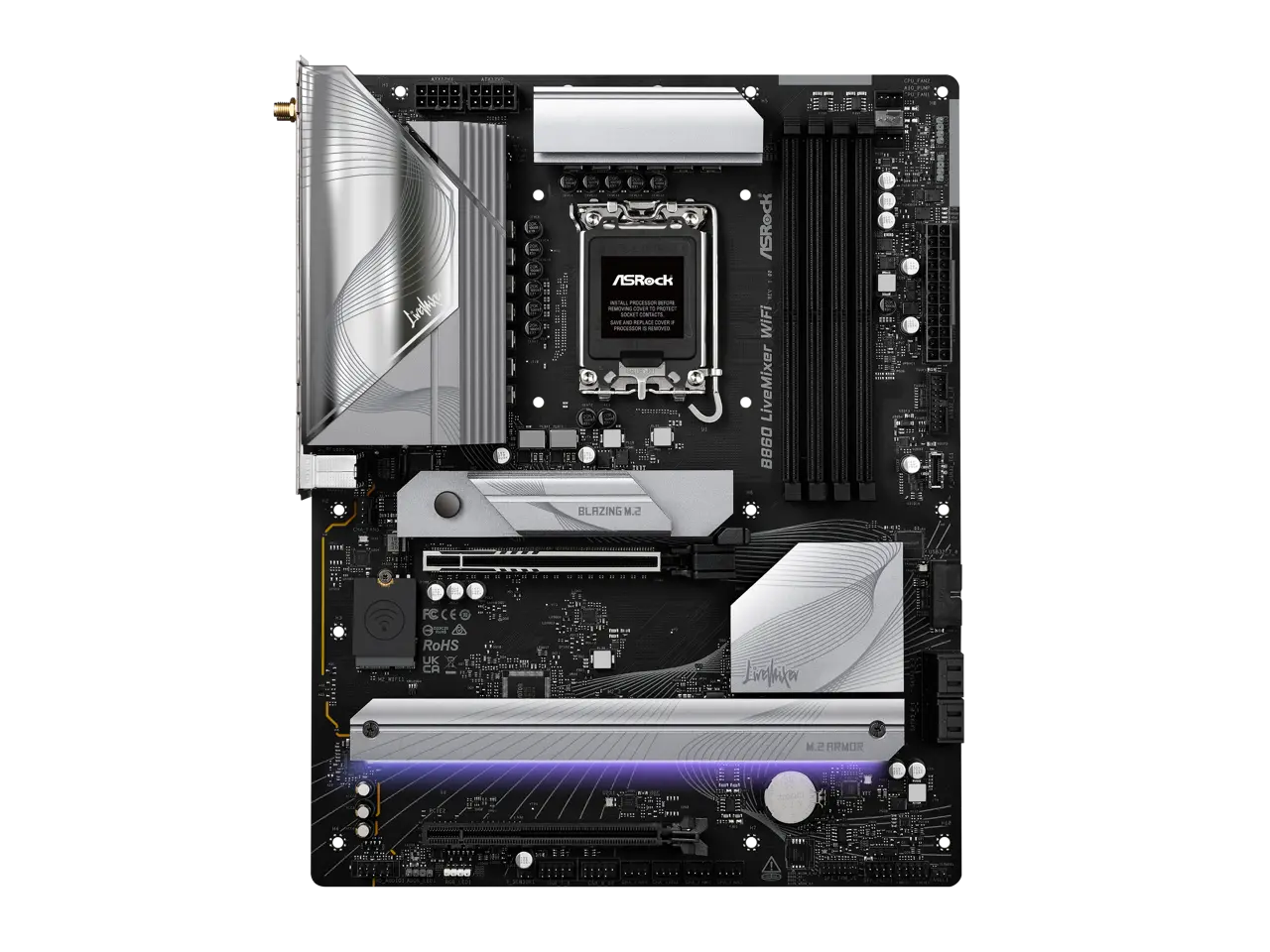 5. ASRock B860 LiveMixer WiFi LGA 1851 Intel B860 SATA 6Gb/s DDR5 Intel Core Ultra ATX Motherboard