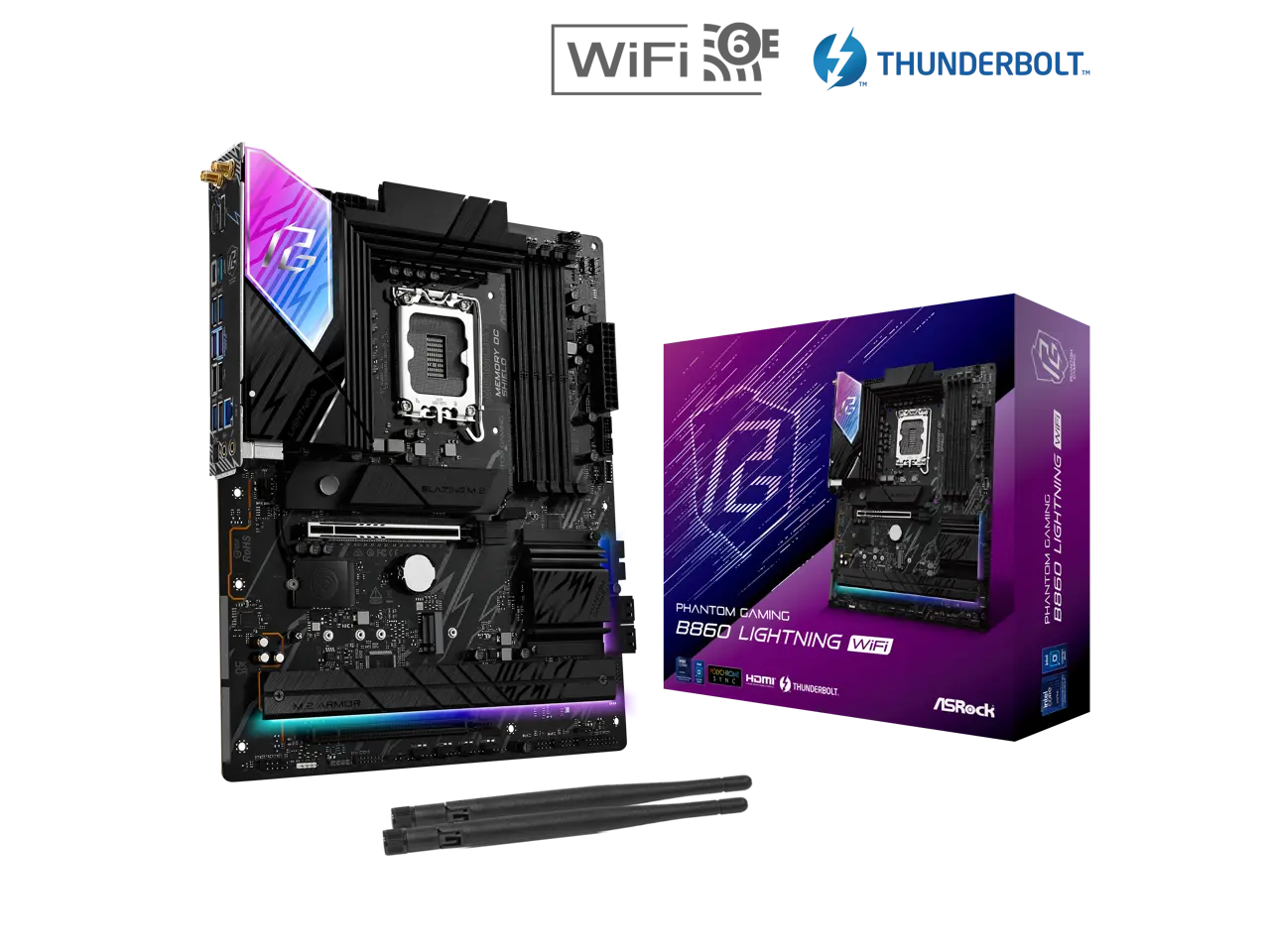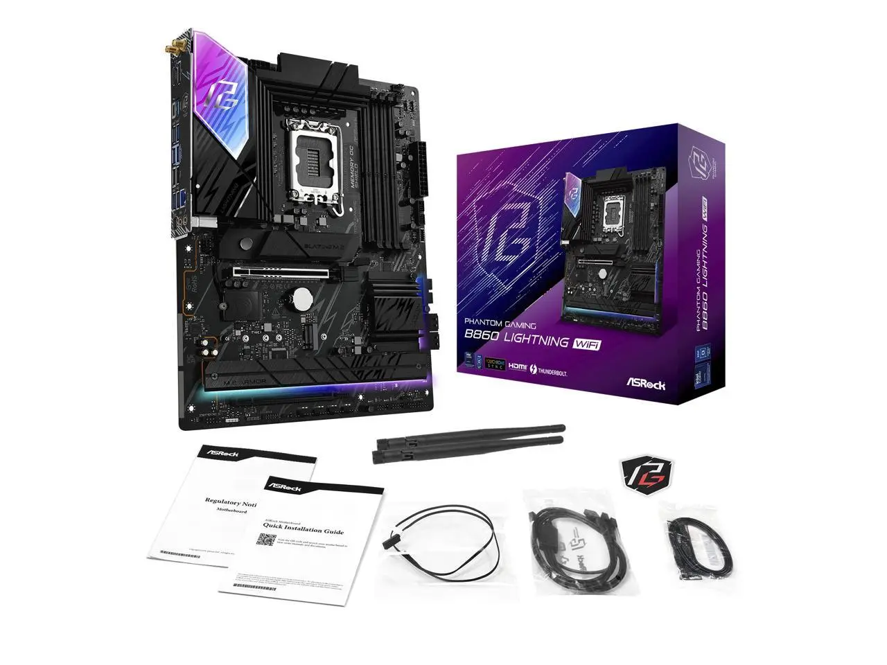 ASRock Phantom Gaming B860 Lightning WiFi LGA 1851 Intel B860 SATA 6Gb/s DDR5 ATX Motherboard