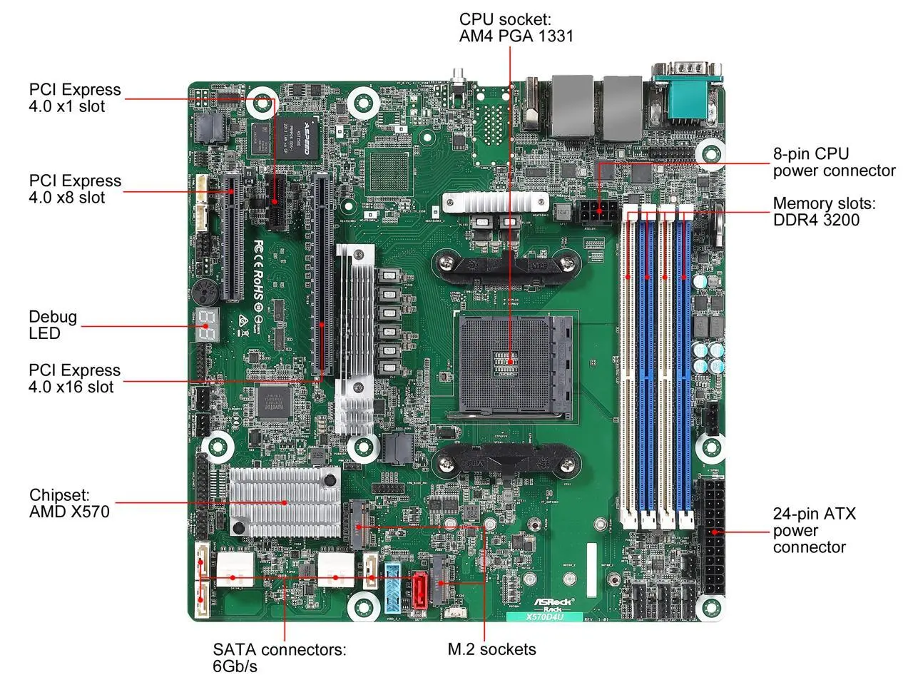 AsRock Rack X570D4U micro-ATX Server Motherboard AMD AM4 PGA 1331 Dual GLAN