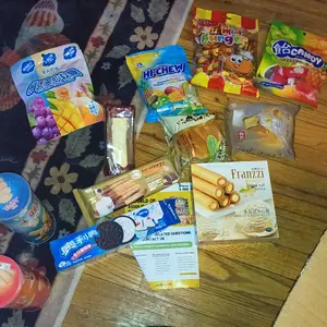Came with 3 breads , 4 candies , 3 chips 3 cookies ? I think and that 1 pocky stick and 1 drink⦠edit: I didnāt like 4 out of the 15 everything else was sooo good only liked one of the breads but the experience was nice to have ! The last picture is the ones I didnāt like.