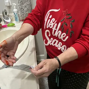 These pills are a mess! The whole inside of the bag is orange and every pill you pick up is orange. It stains your hands and clothes. There is no way to take this pill without creating a mess.
