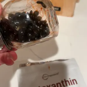 I received the Astaxanthin in the mail in a plastic envelope. When I opened the envelope it looked fine. Both the bags were undamaged. I opened the product and there was a red/orange liquid over everything. I requested a replacement/refund but it was denied. There were 12 or so pills busted open.