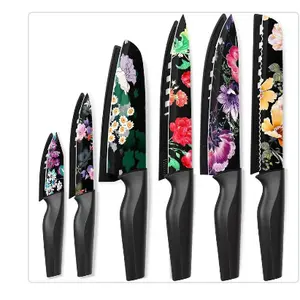 【Elegant & Affordable】 The Colorful Flower Knife Set includes the most commonly used kitchen knives, providing you with a complete set of versatile kitchen tools with a stunning appearance. It includes an 8-inch chef's knife, an 8-inch bread knife, an 8-inch slicing knife, a 7-inch Santoku knife, a 5-inch utility knife, a 3.5-inch paring knife, and six blade guards