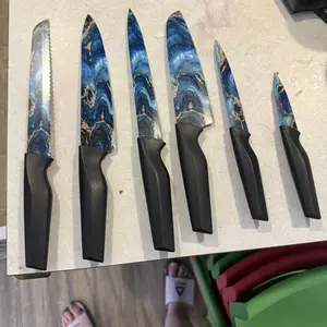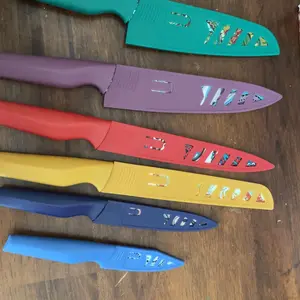 ·Includes: 8-inch chef's knife, 8-inch bread knife, 7-inch santoku knife, 8-inch carving knife, 5-inch utility knife, 3.5-inch paring knife, and 6 sheaths. This 6-piece set handles all your cutting needs. Perfect for home, camping, hiking, RVing, travel, picnics, and barbecues.