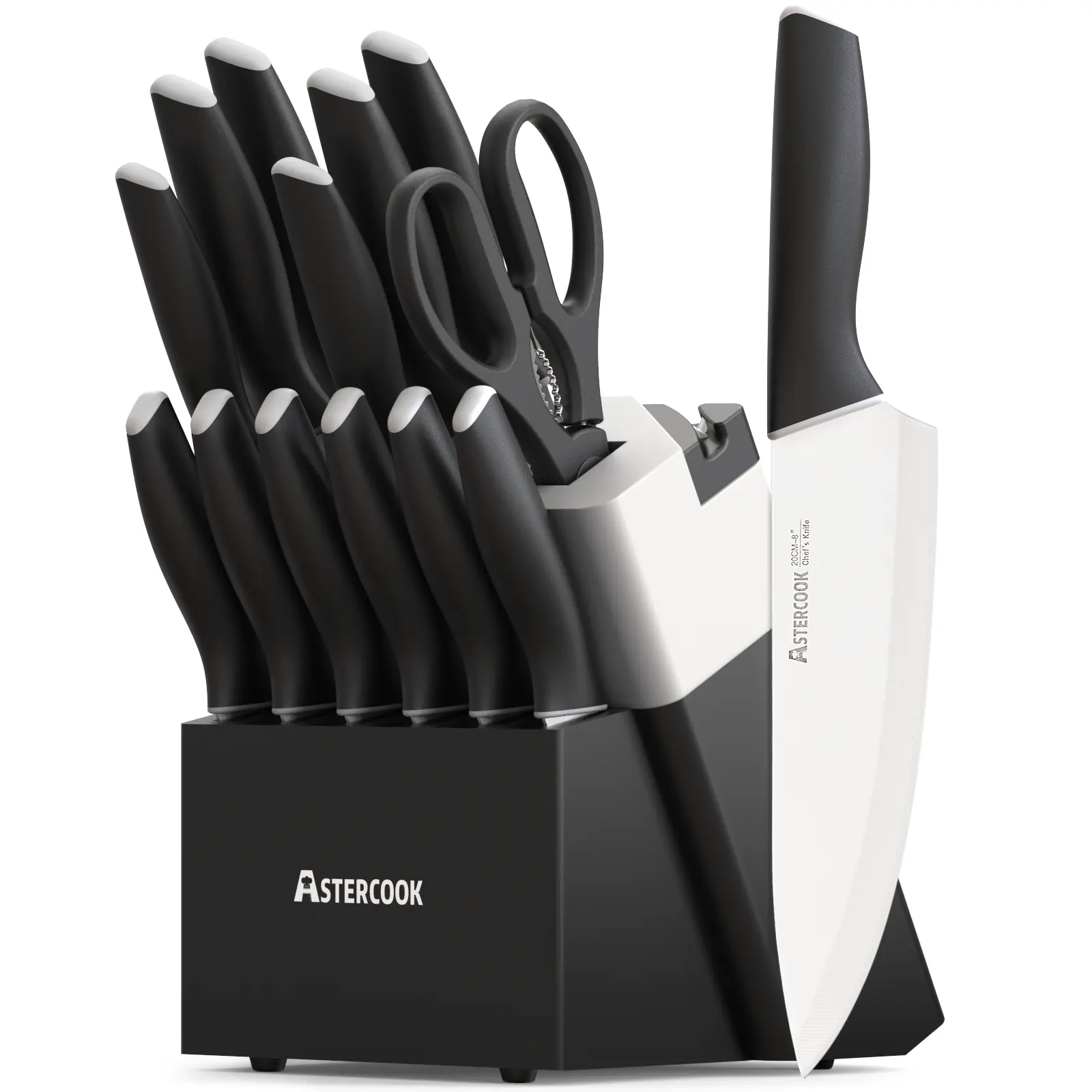 The set comes with 6 pcs 4.5" serrated steak knives, a kitchen shear, and a dishwasher-safe block with a built-in sharpener. Anti-slip handles ensure comfort. 🌟