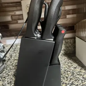 BEST SHARP KNIFE SET - Each knife has been adjusted for optimum sharpness and is easy to use the built-in sharpener to resharpen. Ergonomically designed handles operate smooth and comfort