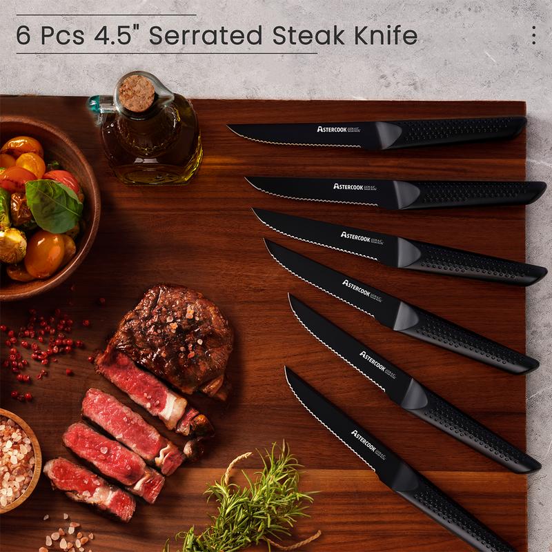 Upgrade your kitchen with the Astercook Knife Set with Wood Block and enjoy the convenience and safety it brings to your cooking.
