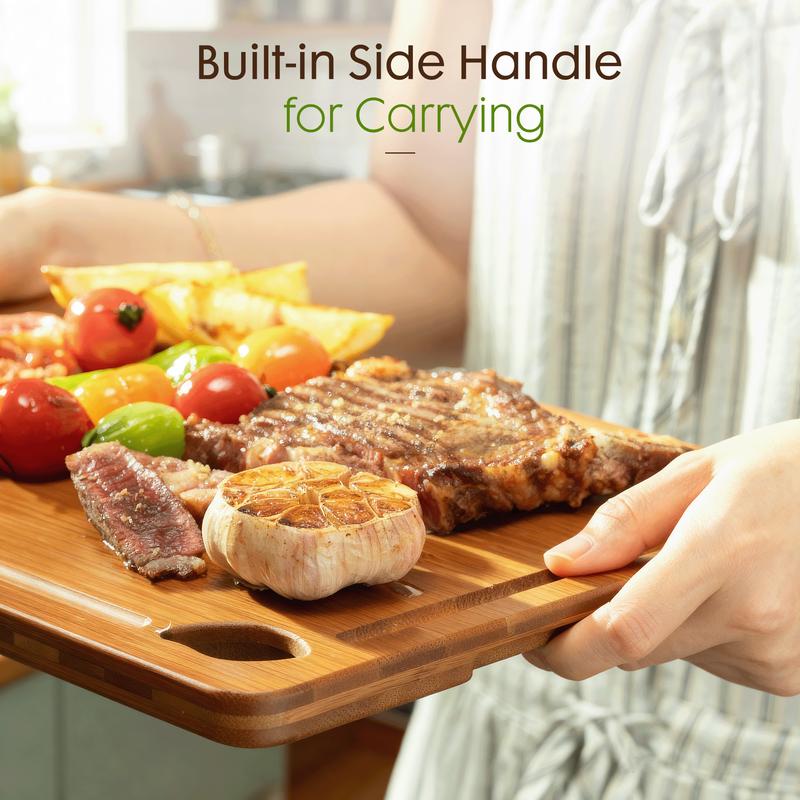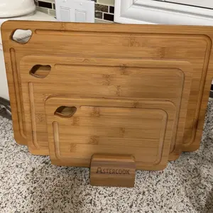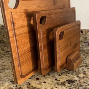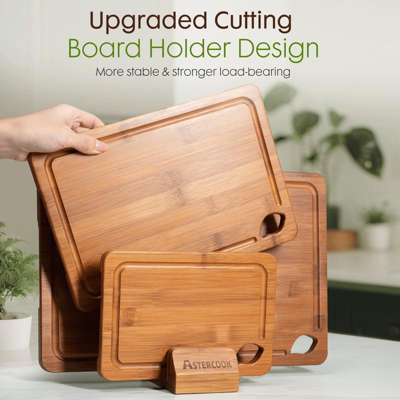 This is beautiful set, both sleek and functional! It comes with a holder to help display as well as keep off the counter in the event of spills which has been a problem for me in the past. I’m hoping they have a larger board for sale for you to use for large meats and baking! They also look great when I’m making my cooking videos! For its sleek design and great price, you can’t go wrong with these kitchen boards 👌🏼❤️❤️❤️